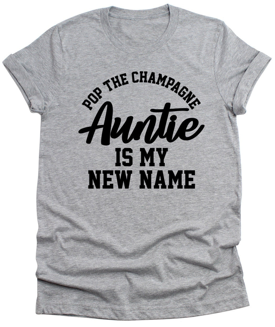 Auntie Gifts, Funny Unisex T-shirt, Gift for aunt, Pop The Champagne Auntie is my new name Shirt