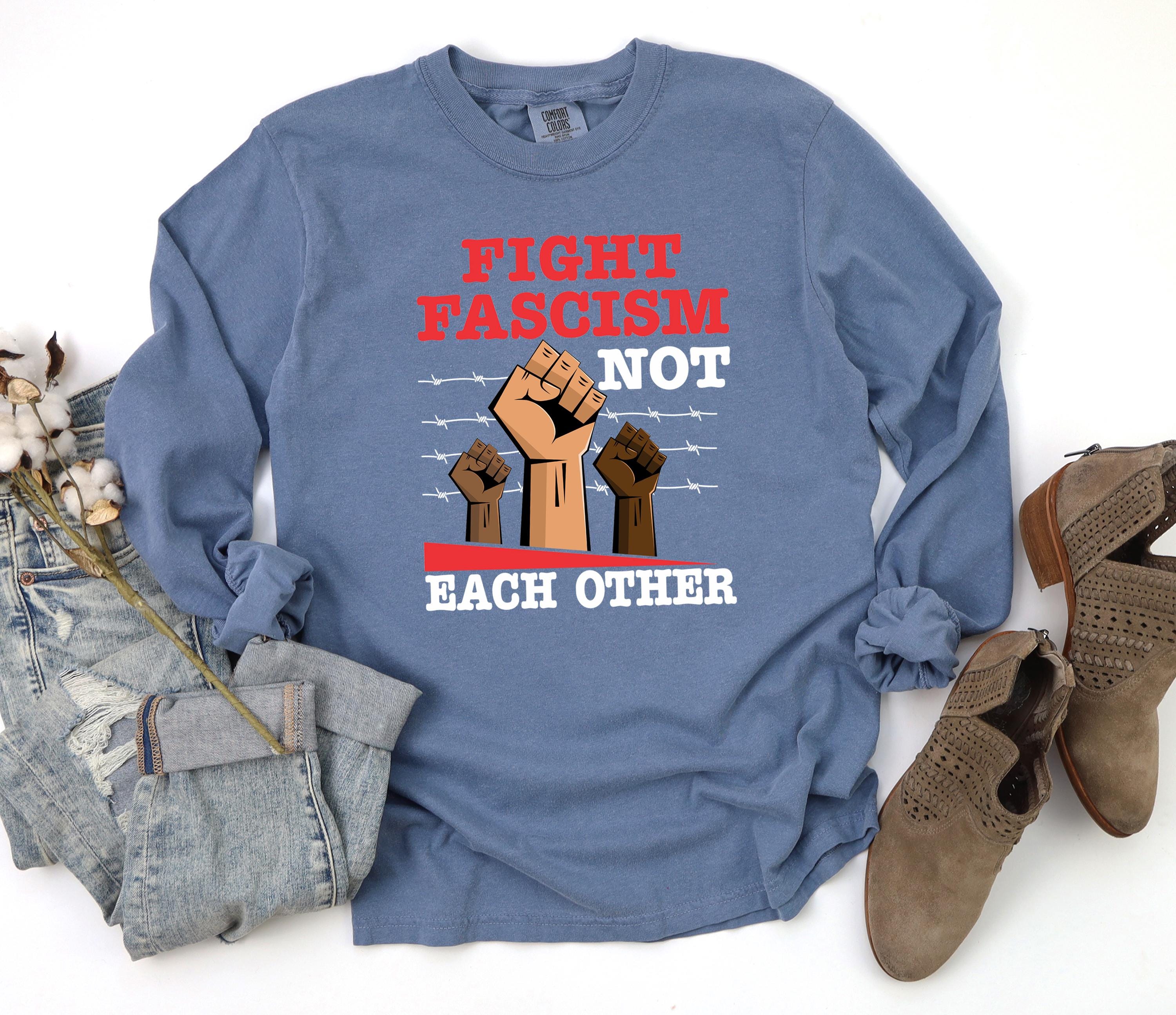 Fight Fascism Not Each Other Long Sleeve Shirt, Comfort Colors® Political Shirt, Resist Shirt, Anti Oligarchy Shirt, Protest shirt, Democrat