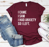 I Came I Saw I Had Anxiety So I Left Shirt, awkward shirt, hipster shirt. Gift for teens, introvert shirt