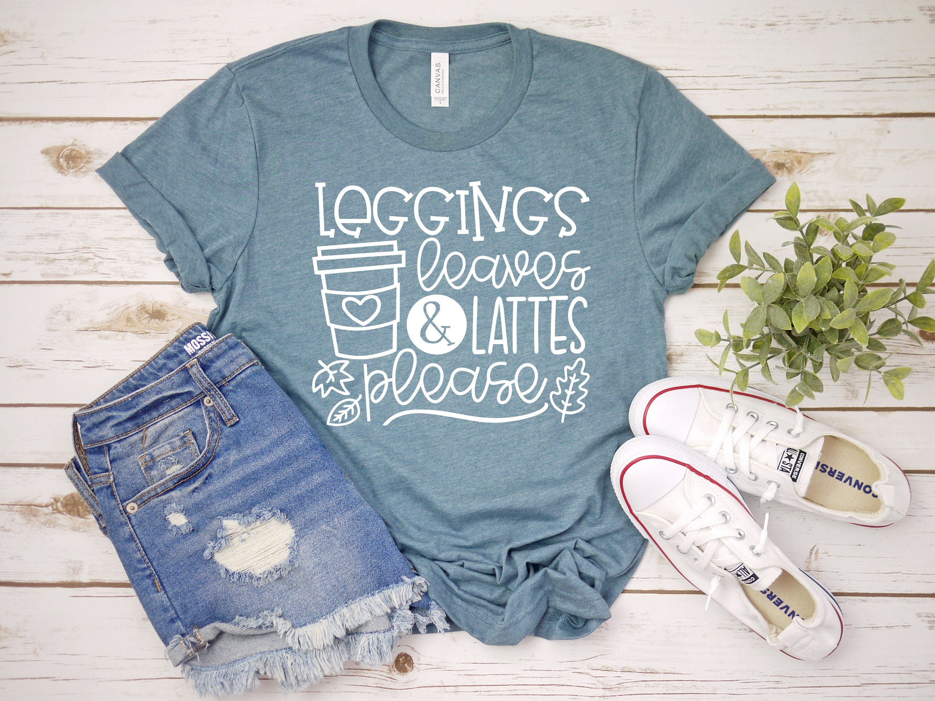 Leggings Leaves & Lattes Please - Fall Shirt, Pumpkin Shirt, Women Fall Shirt, Pumpkin Spice Shirt, Seasonal Shirt, Cute Womens Fall Shirt