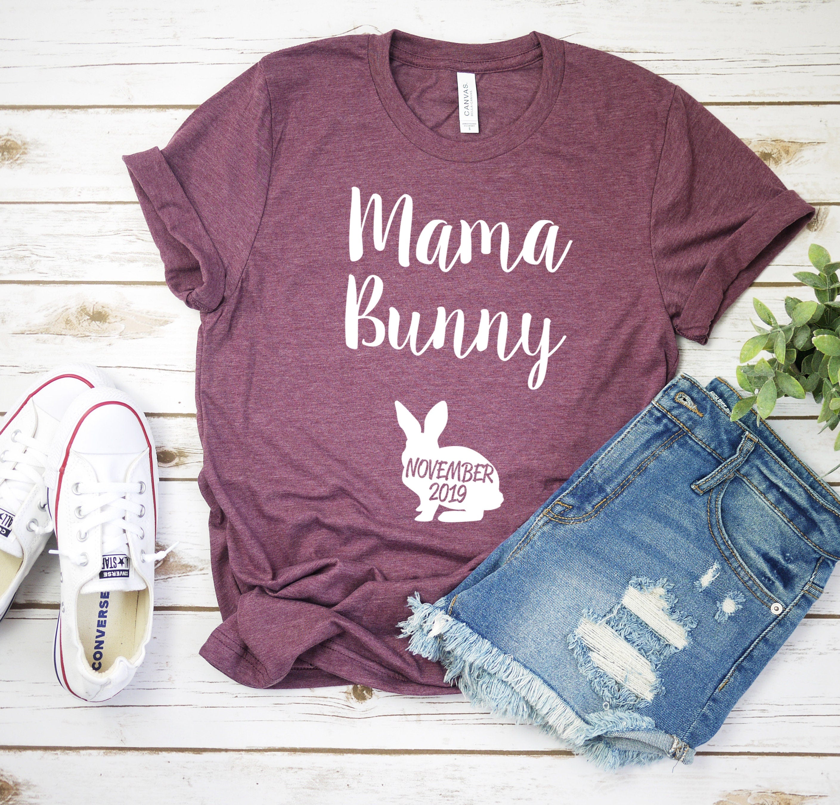 Mama Bunny Due Date Shirt, Personalized Easter Maternity Shirt, Easter Pregnancy Announcement Tee, Cute Baby Announcement husband, grandma