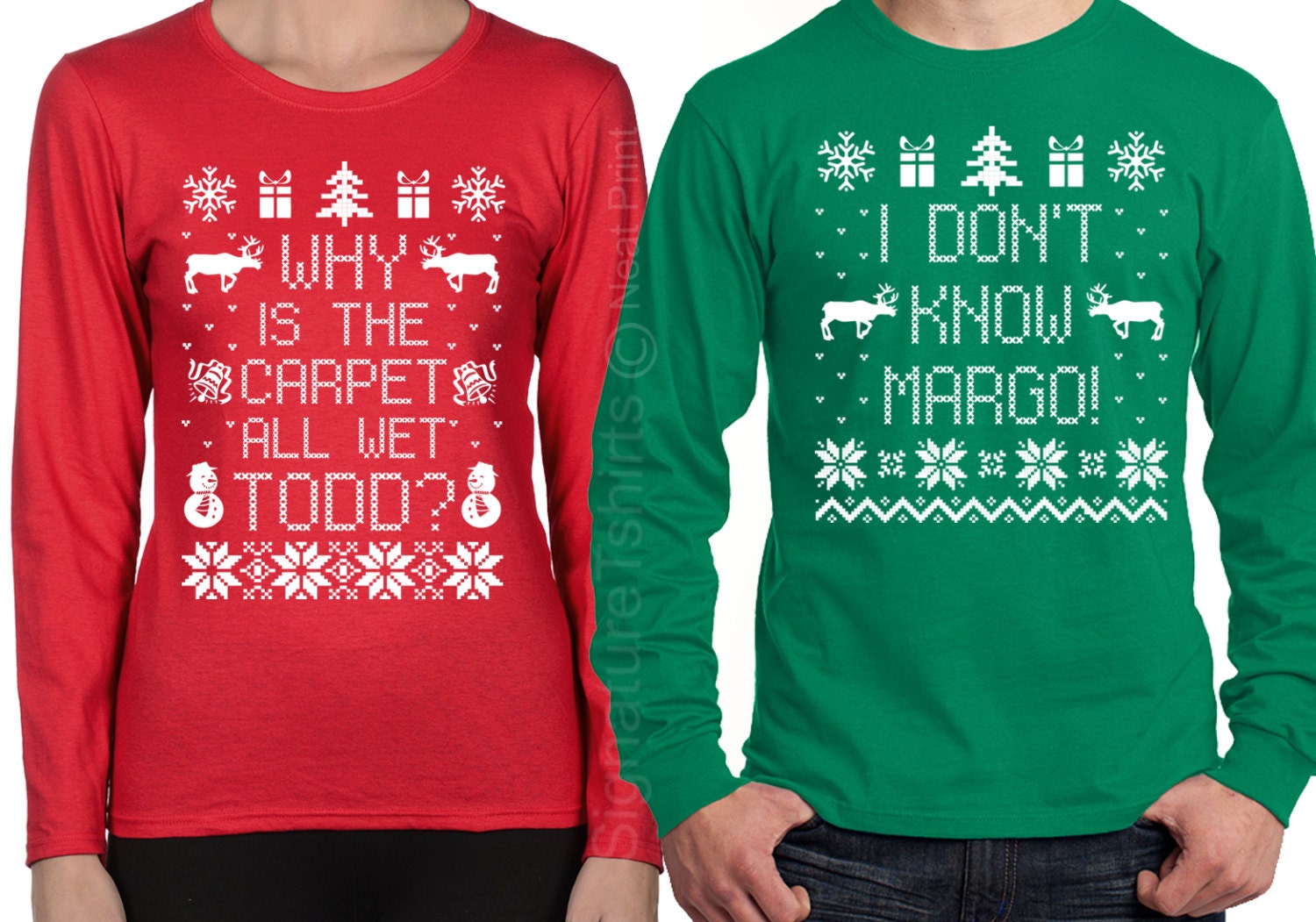 Matching Christmas Shirts - I Don't Know Margo and Why is the Carpet All Wet Todd - Unisex Long Sleeve TShirts - SET OF 2- Holiday shirts
