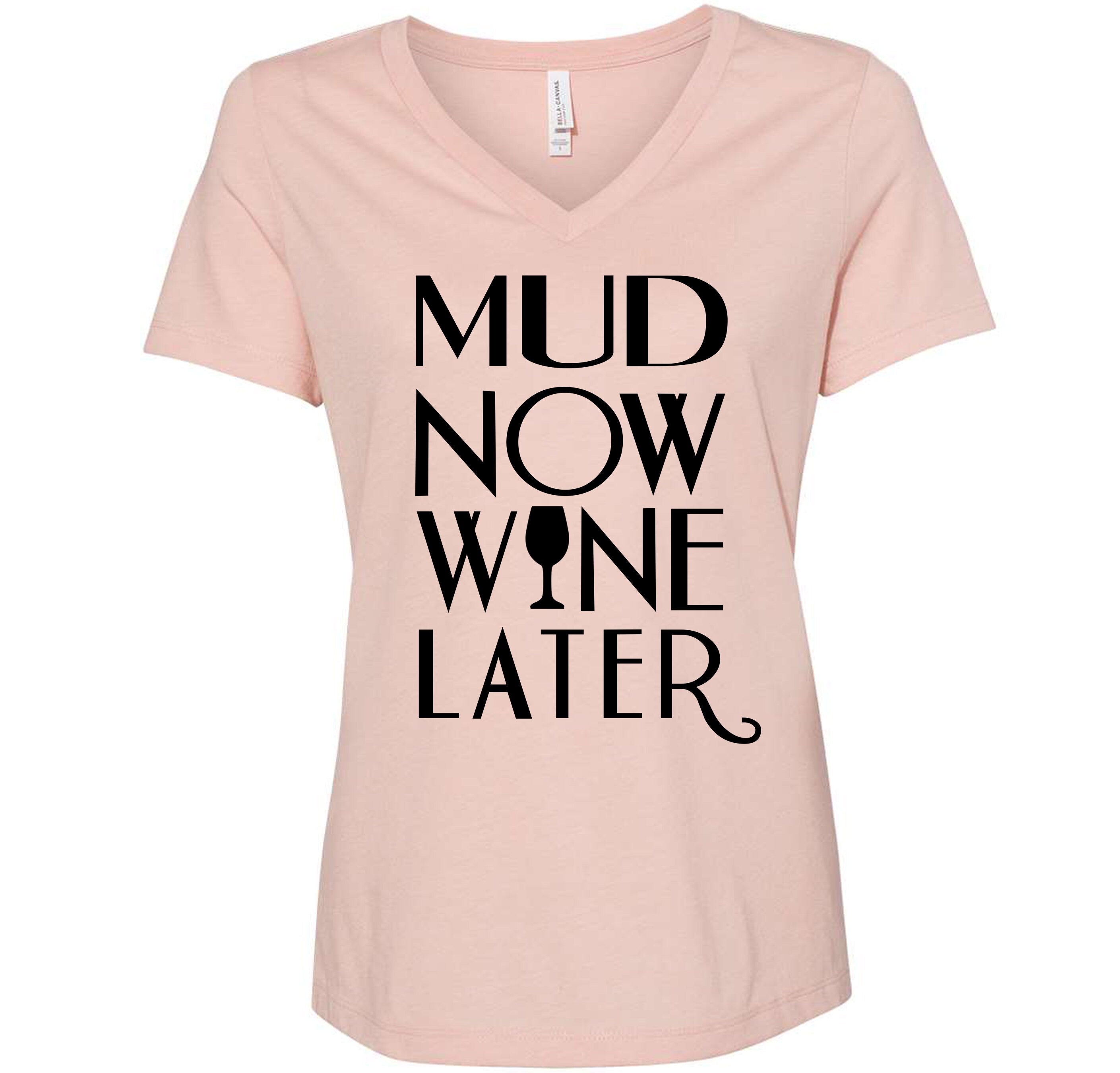 Mud Now Wine Later Women's V Neck Shirt, Mud Now Wine Later Shirt, Gym Shirt, Mud race, Graphic Womens Shirt, Mother's Day Gift - Poly blend shirt