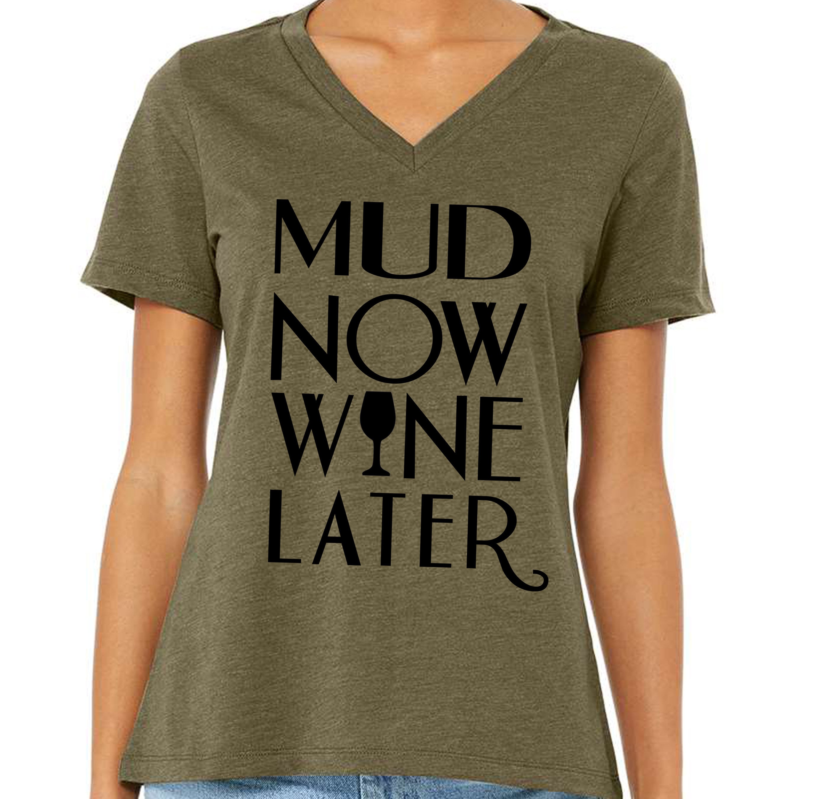 Mud Now Wine Later Women's V Neck Shirt, Mud Now Wine Later Shirt, Gym Shirt, Mud race, Graphic Womens Shirt, Mother's Day Gift