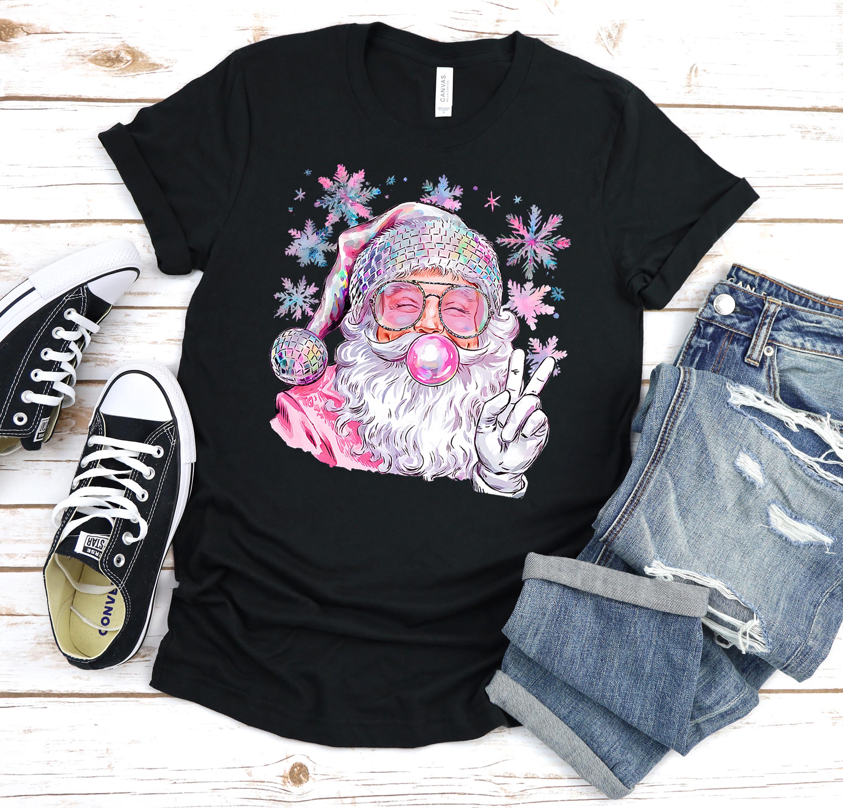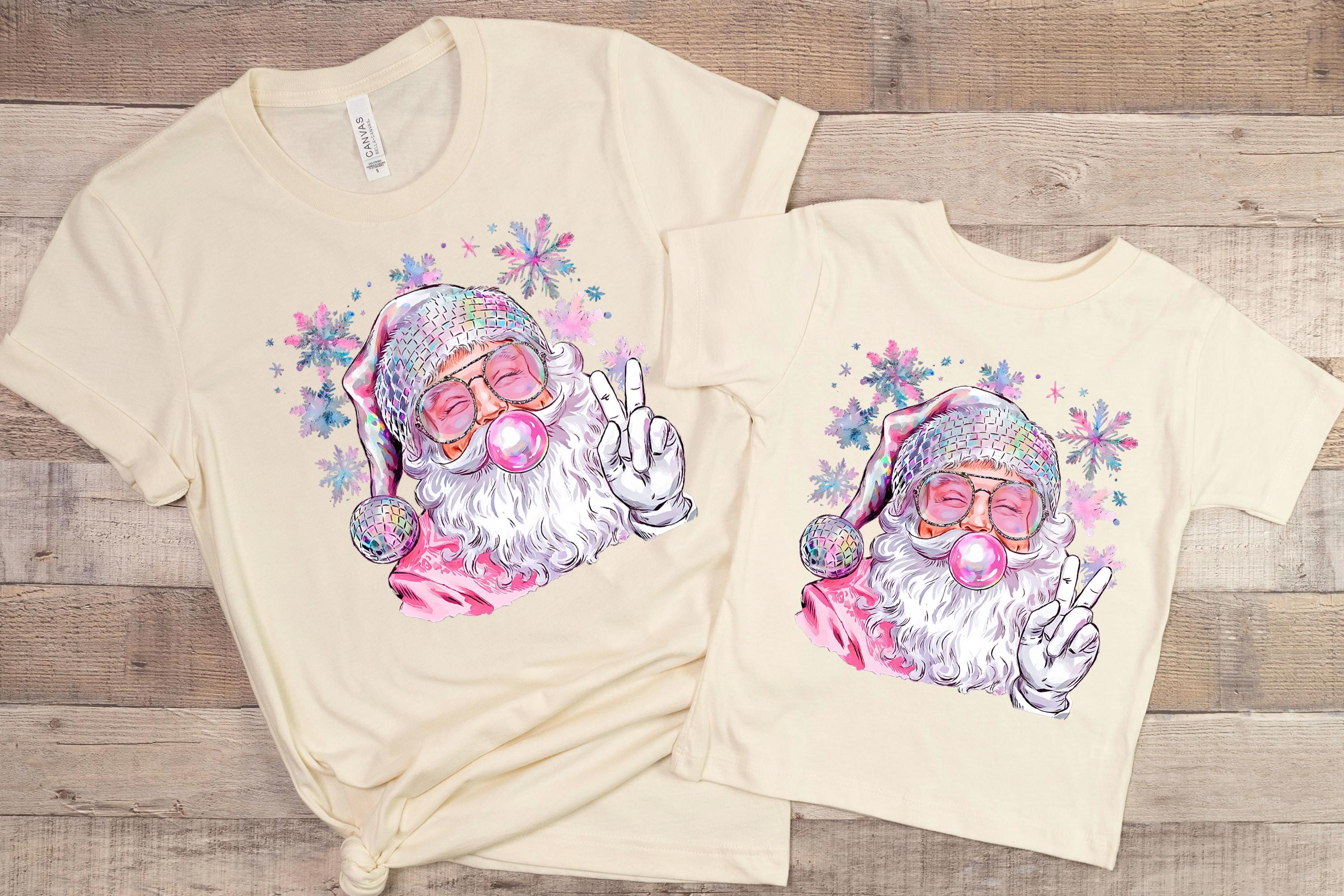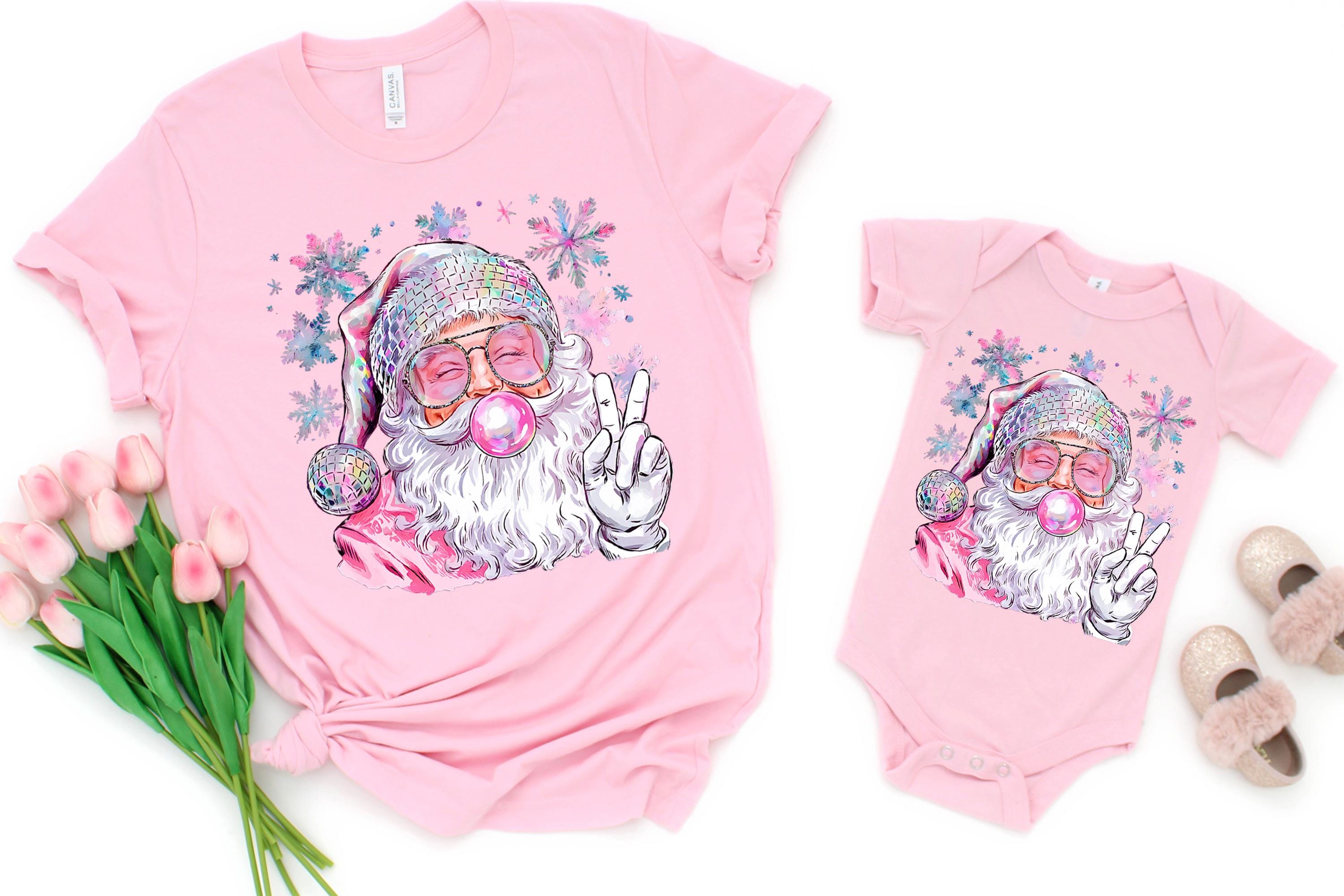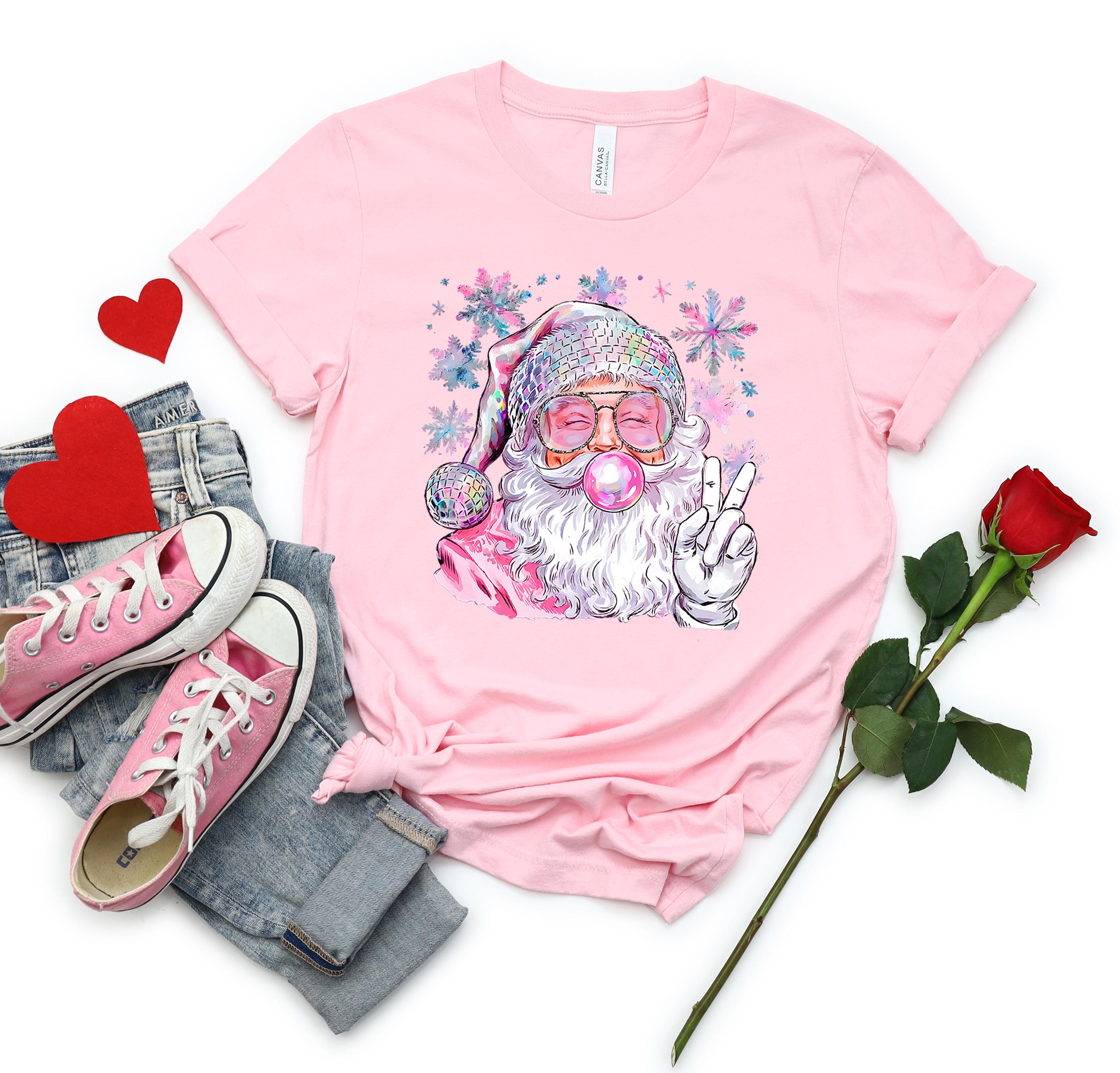 Santa Christmas Blowing Bubble Retro Shirt, Funny Santa With Sunglasses Xmas, Vintage Merry Christmas Shirt, Pink Santa Christmas T-shirt