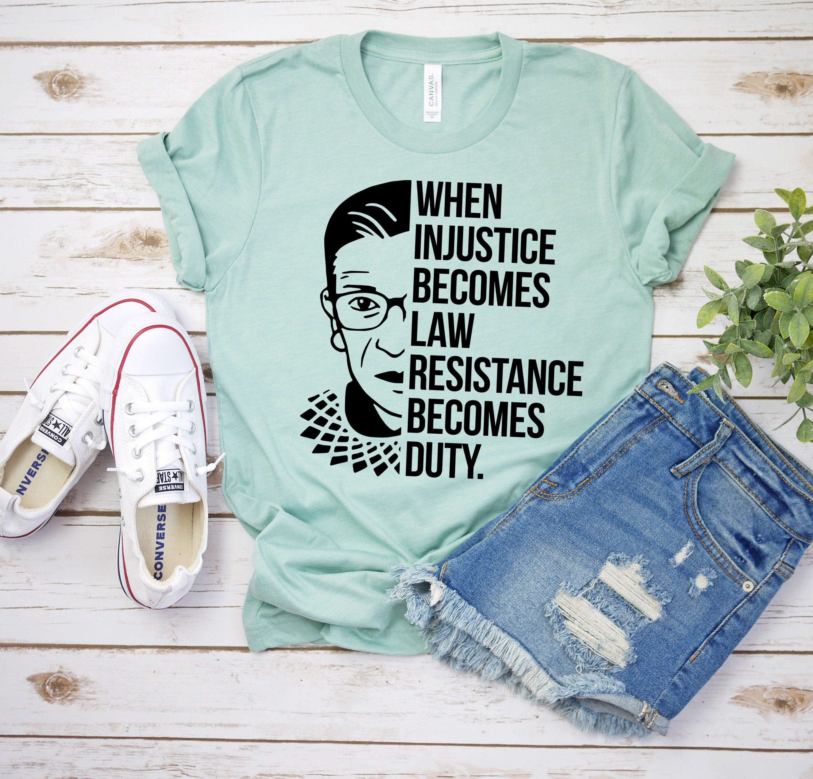When Injustice Becomes Law Shirt, Notorious RBG T-shirt, Resistance Tshirt, Political or protest shirt, Feminist RBG Feminism, Pro Choice