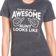 Awesome Aunt ladies T-shirt is super soft high-end jersey blend with a slight heathered appearance for gorgeous look. FITTED SHIRT - please check sizing chart. Runs small - order size larger if needed. Juniors style.