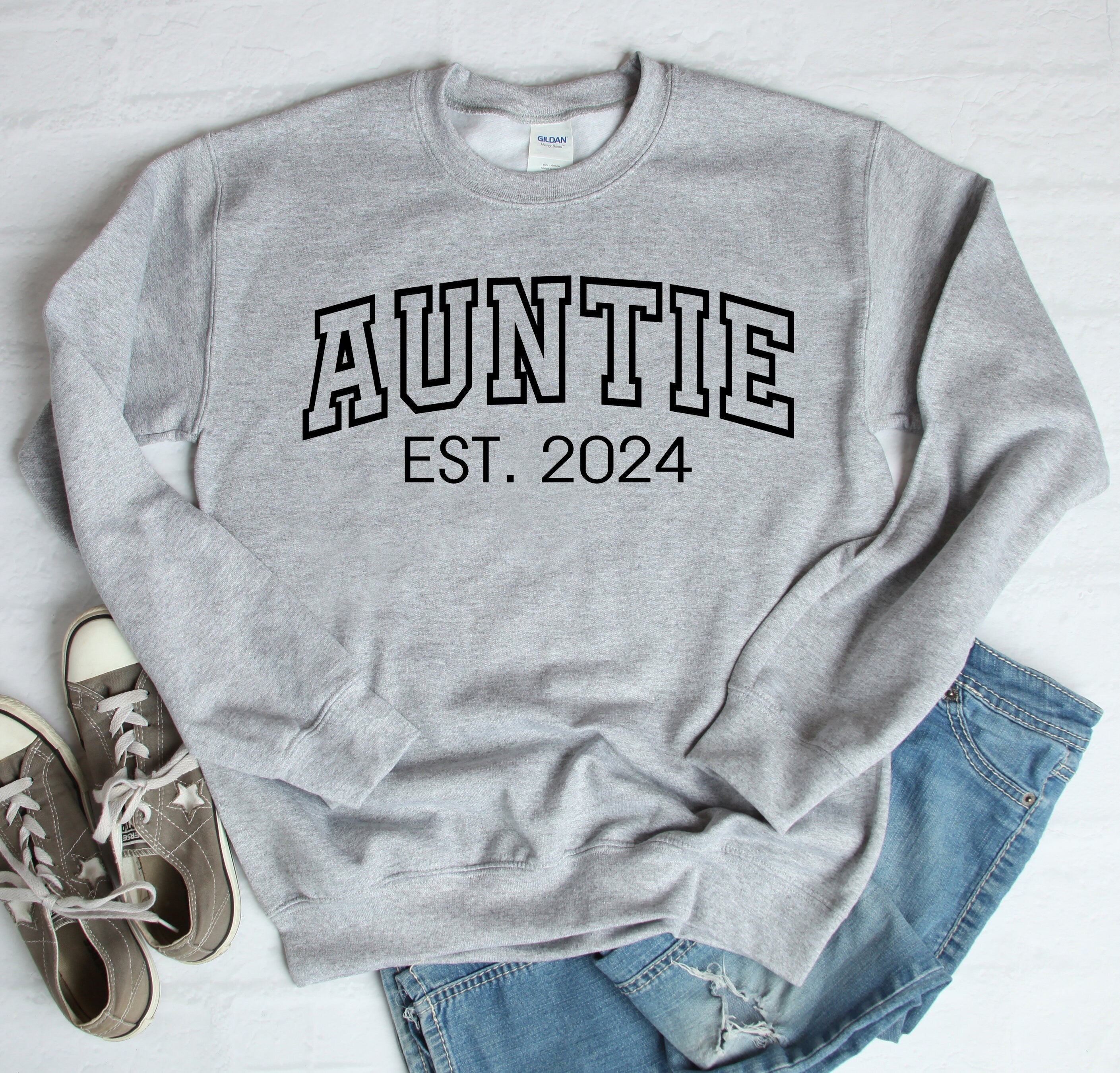 Auntie Est 2024 Sweatshirt, Custom Aunt Sweater, Gift for Aunt, Pregnancy Announcement, Cool Aunt Sweatshirt, Sister Gift, Aunt Mother's Day