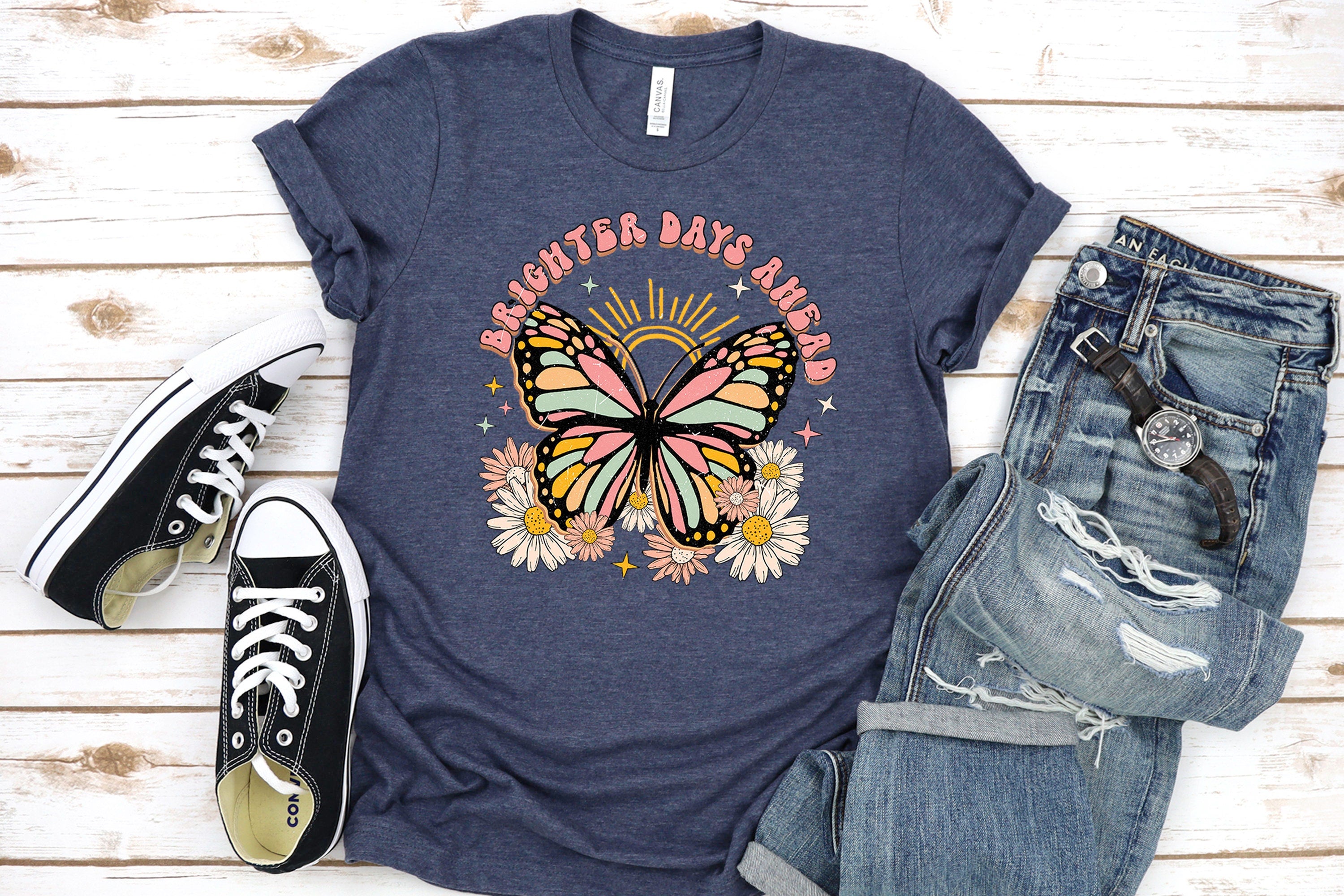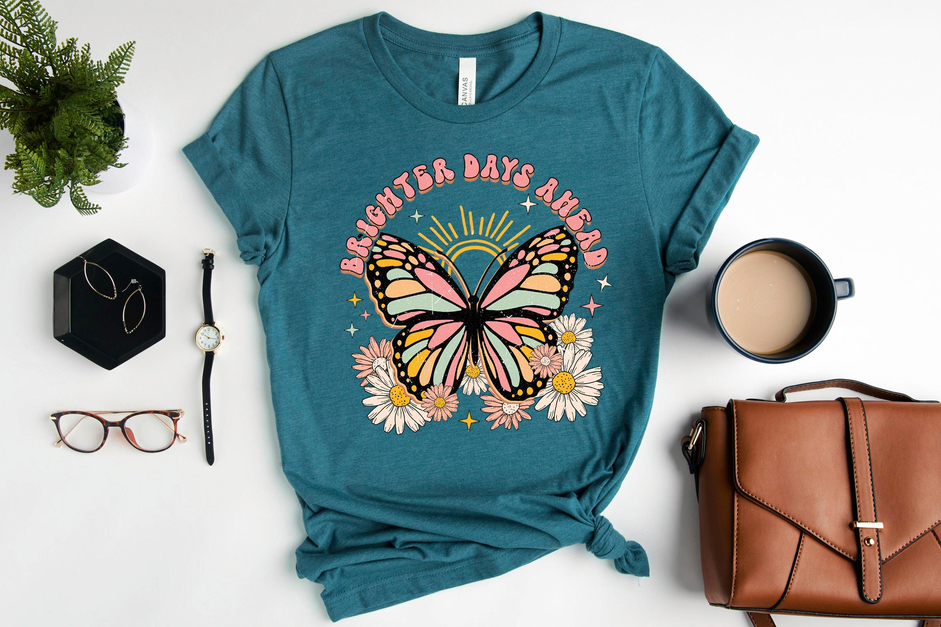 Better days ahead Shirt, Retro Butterfly shirt, Sunflower shirt, Inspirational quote shirt, Positive affirmation shirt, Mental Health Shirt
