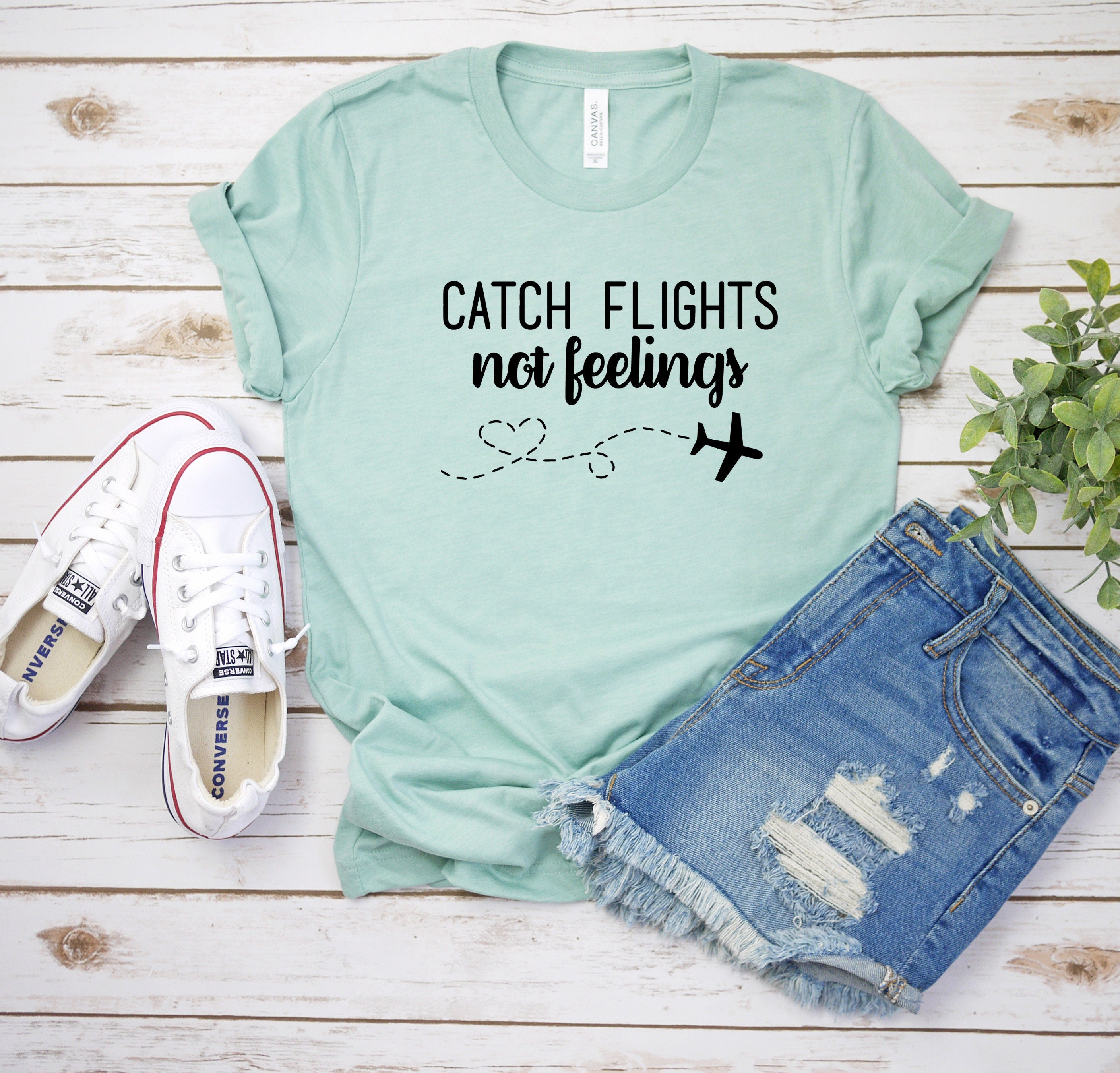 Catch Flights Not Feelings, Vacation shirt, Vacay T Shirt, Graphic Tee, Summer Vacation Tshirt, Travel Shirt, Girls Trip, Travel Mode, Xmas