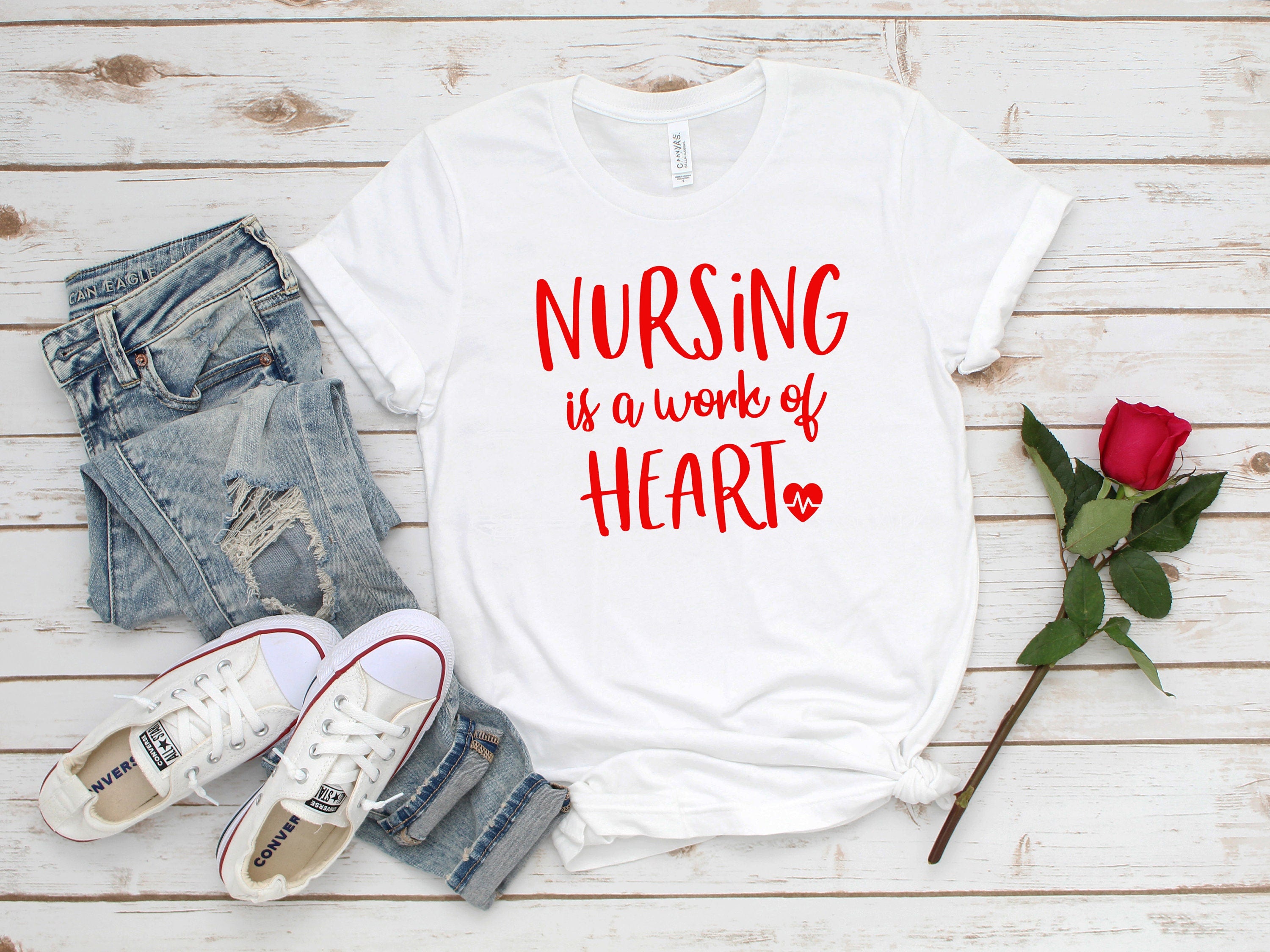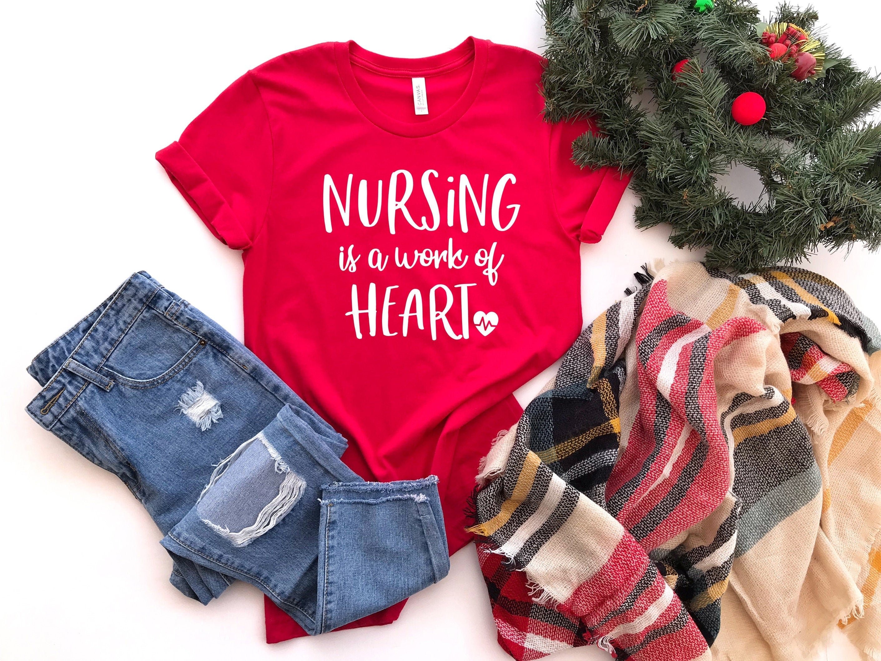 Christmas Gift for Nurse - Nursing Is a Work of Heart Shirt - Funny Nurse T-Shirt - ER Nurse - Gift for Nurse - Graphic Nurse Tee Shirt