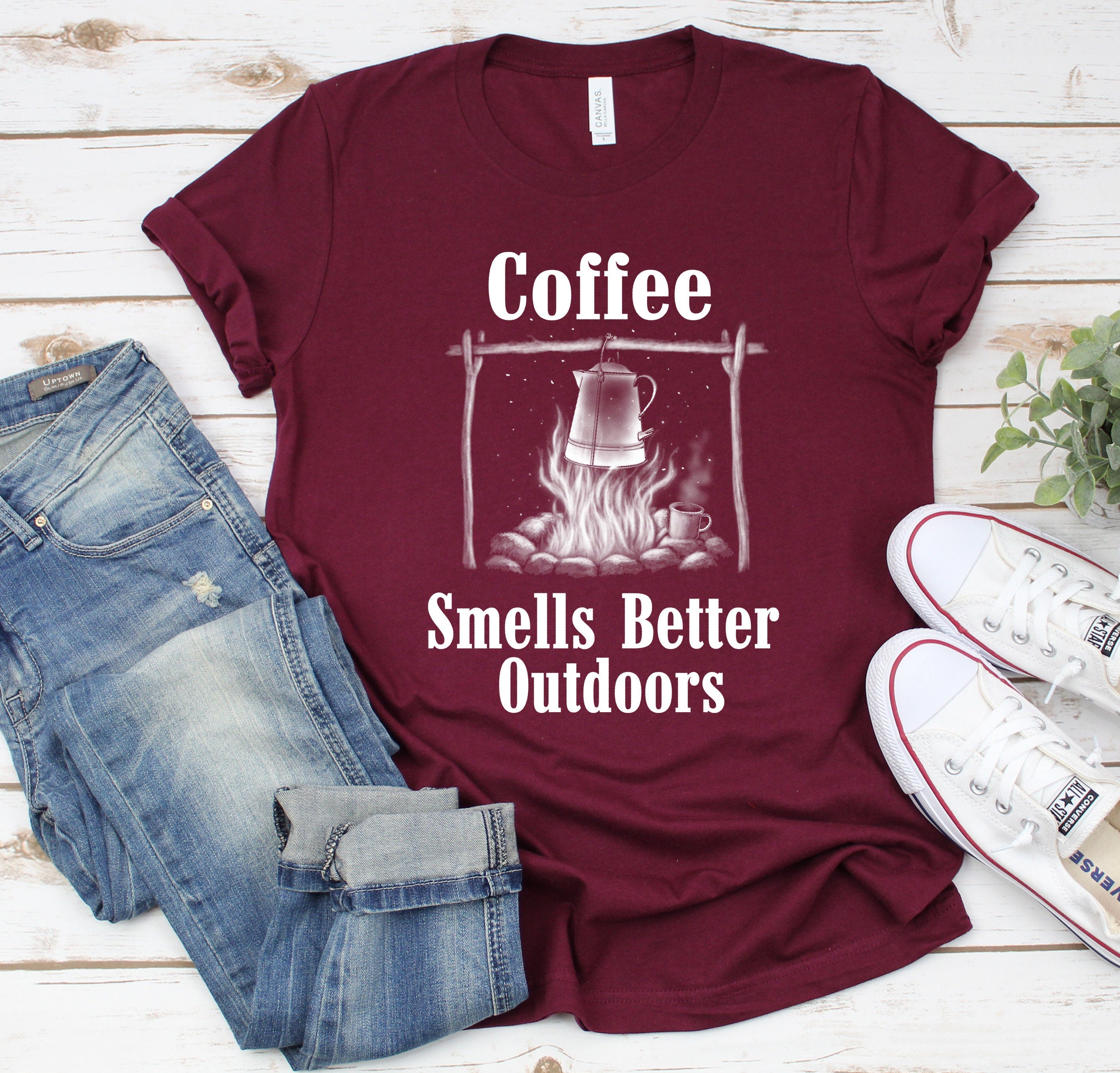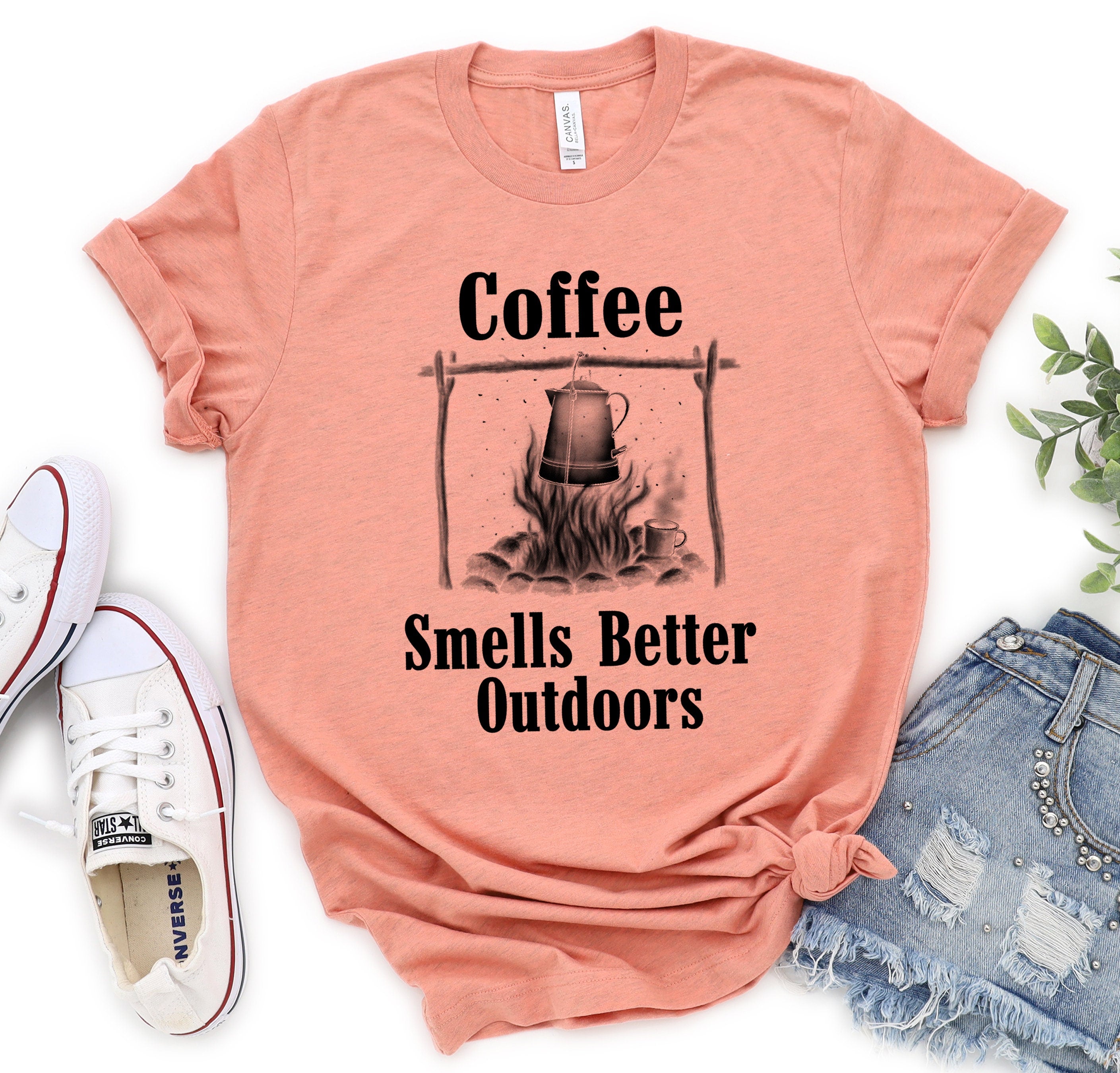 Coffee smells better outdoors Shirt, Outdoors, camping trip, camping shirt, road trip, vacation trip, coffee lover, mountine, hiking
