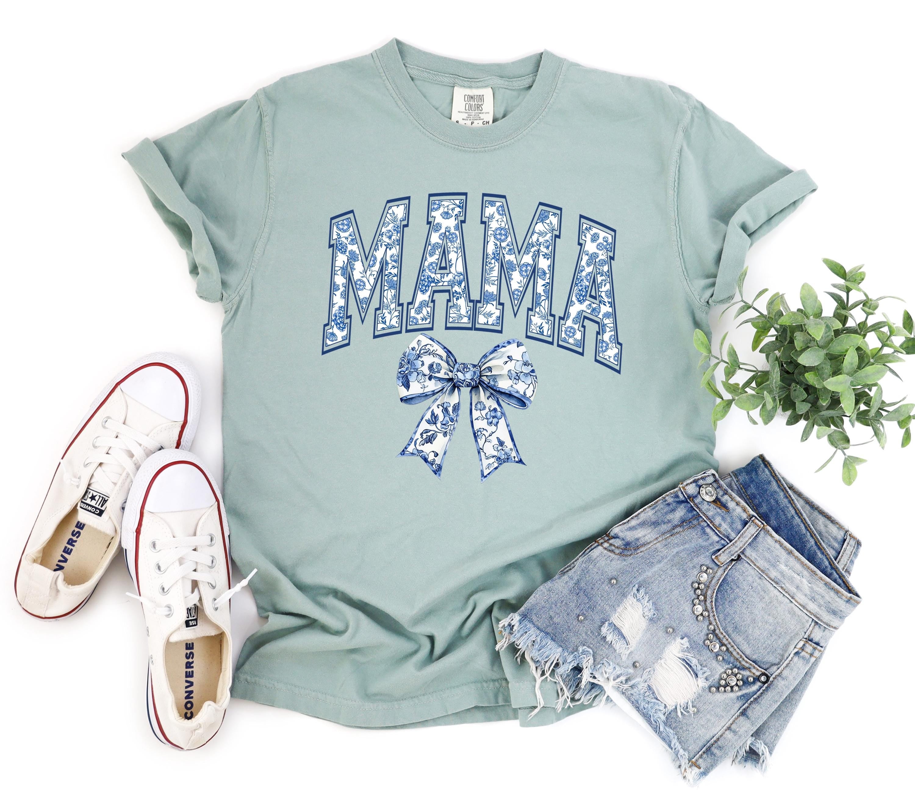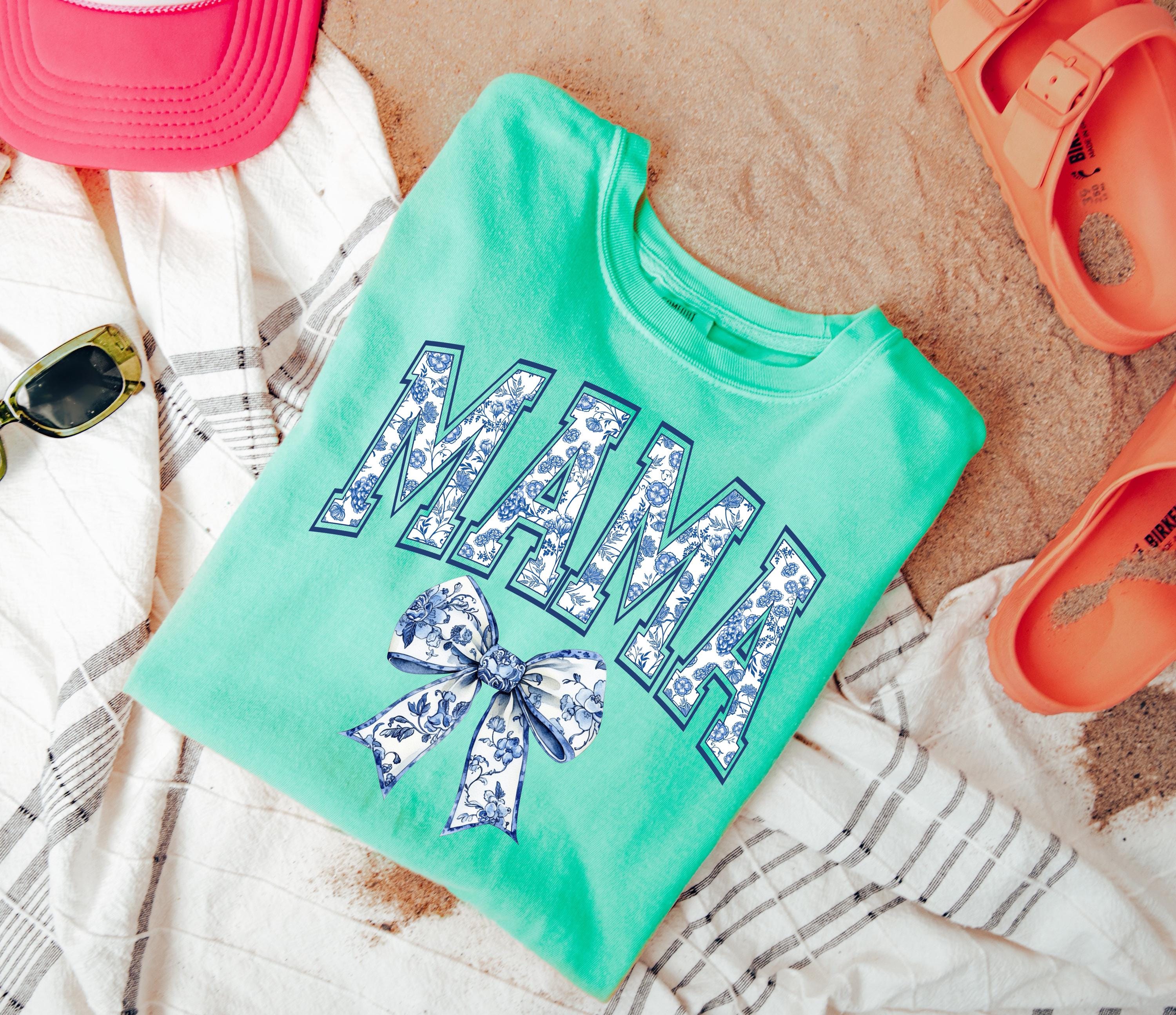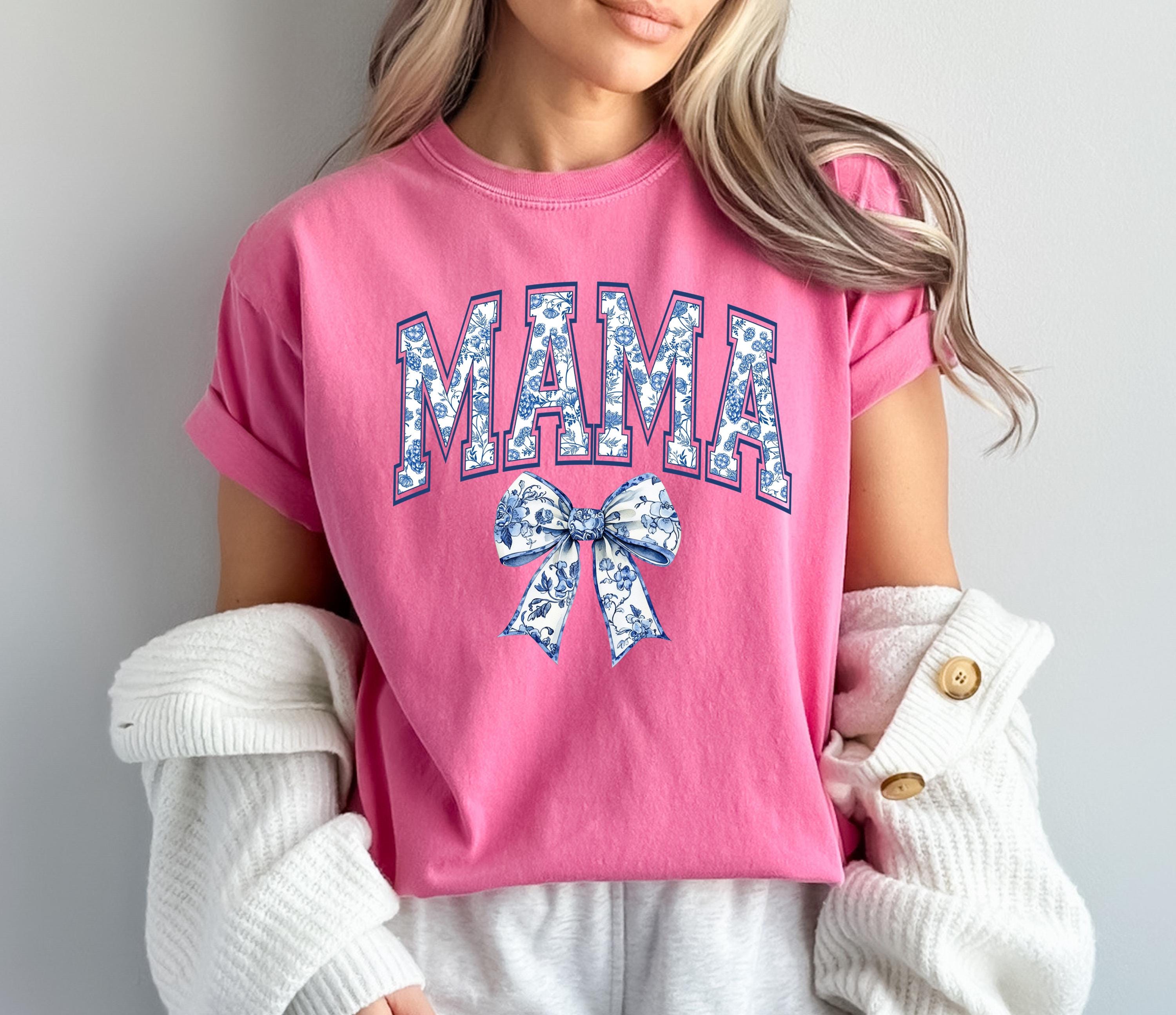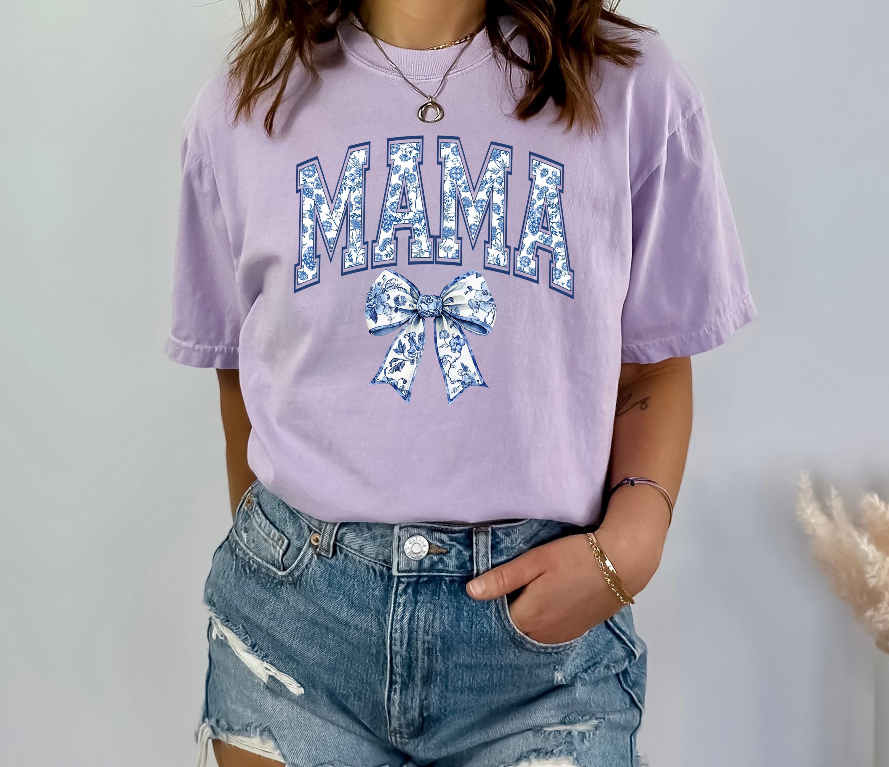 Comfort Colors®, Chinoiserie Mama Shirt, Mother's Day Gift, Gift For Mom, Cute Mom Shirt, Toile Bow Shirt, Chinoiserie Blue Ribbon Shirt