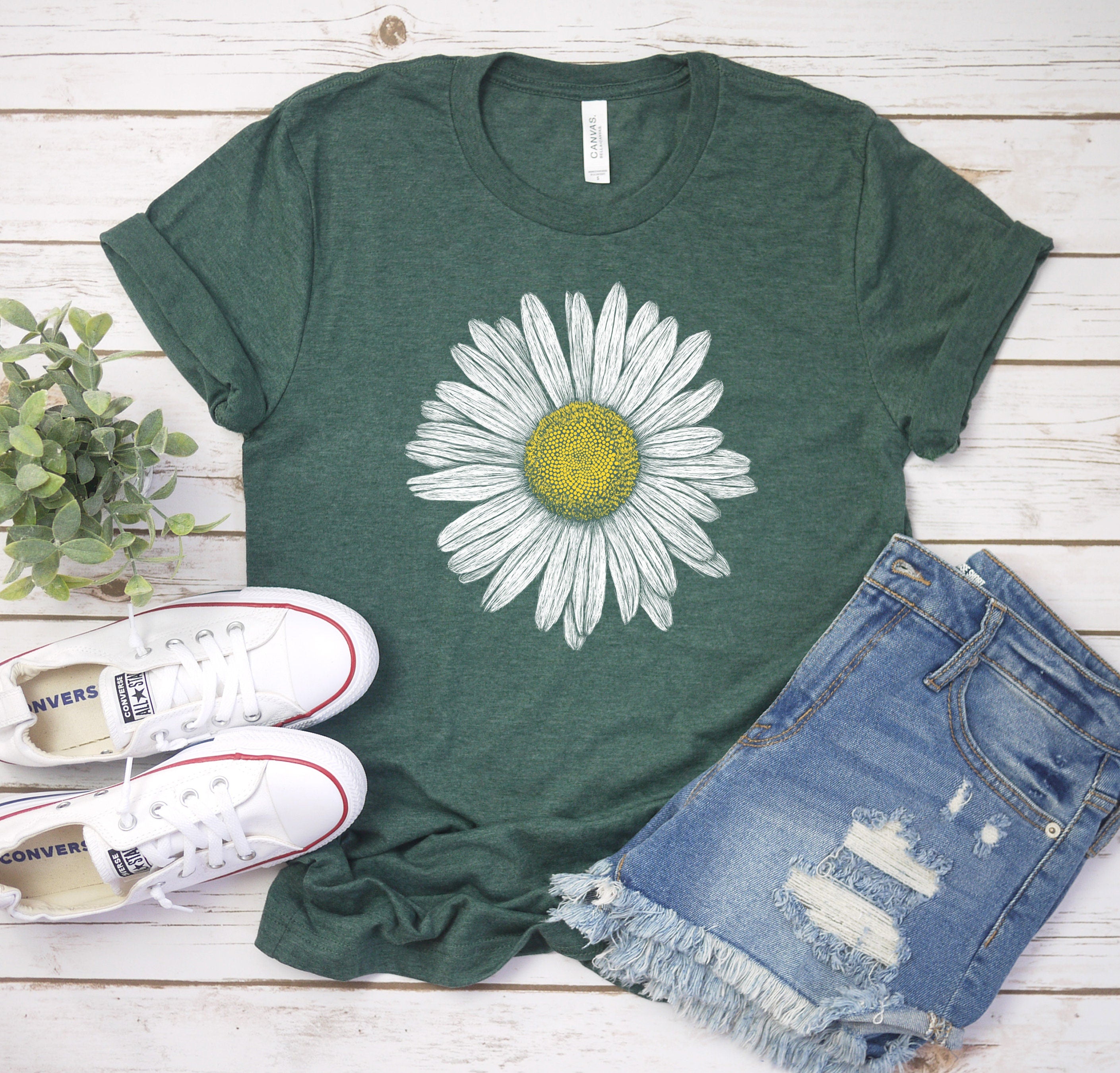 Daisy shirt, Wildflower shirt, boho shirt, floral t-shirt Gift, Birth Month Flower, Gift for sister, Summer Shirt, Women Shirt, Flower Shirt Unisex shirt is made of super soft lightweight cotton