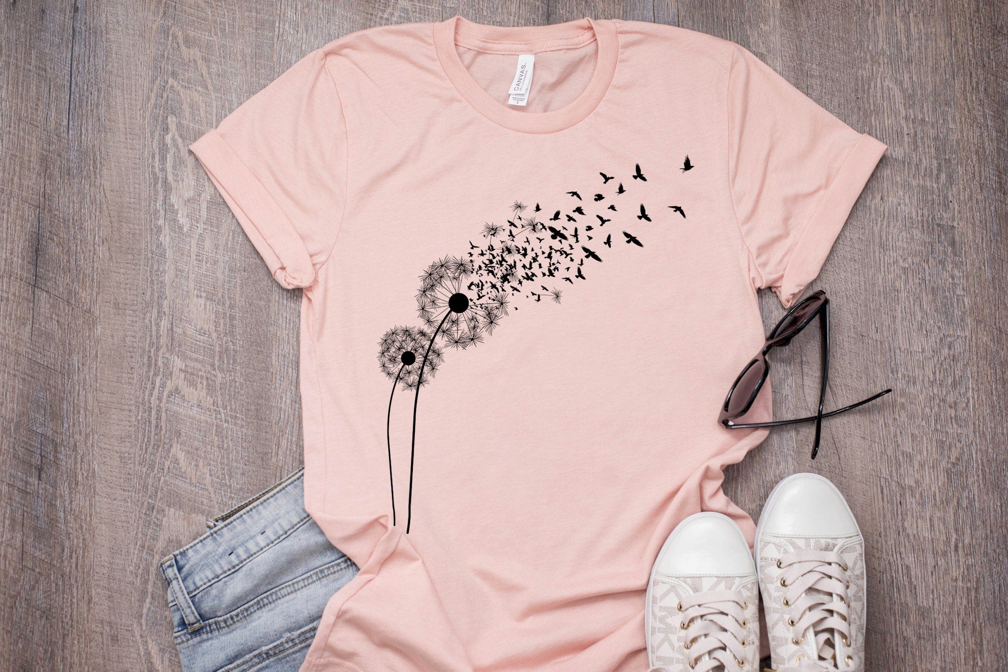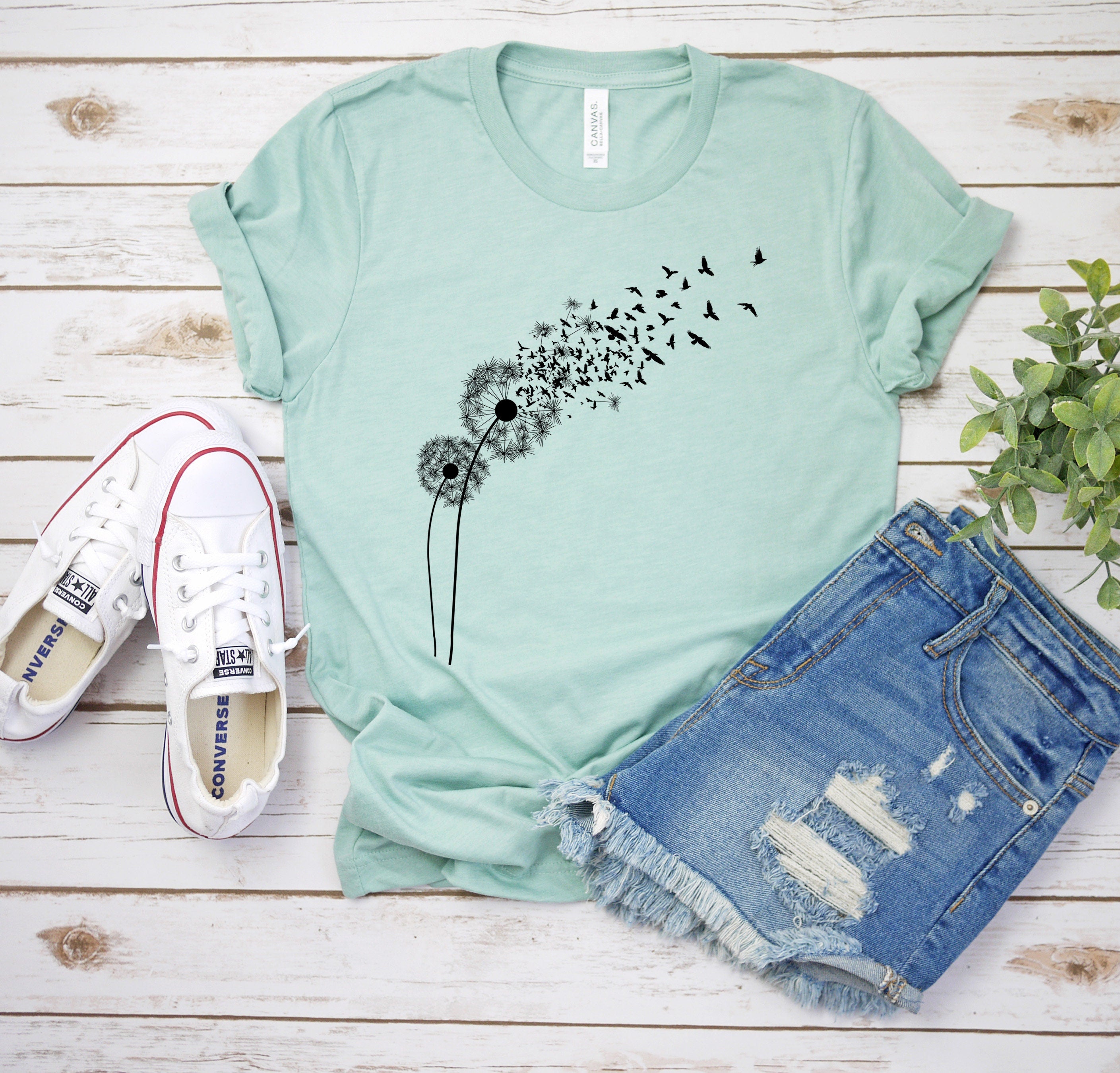 Dandelion Birds, Birds t-shirt, Birds Graphic womens shirt, Graphic birds, Nature tee, Gift for family, Gift for mom, Make a wish