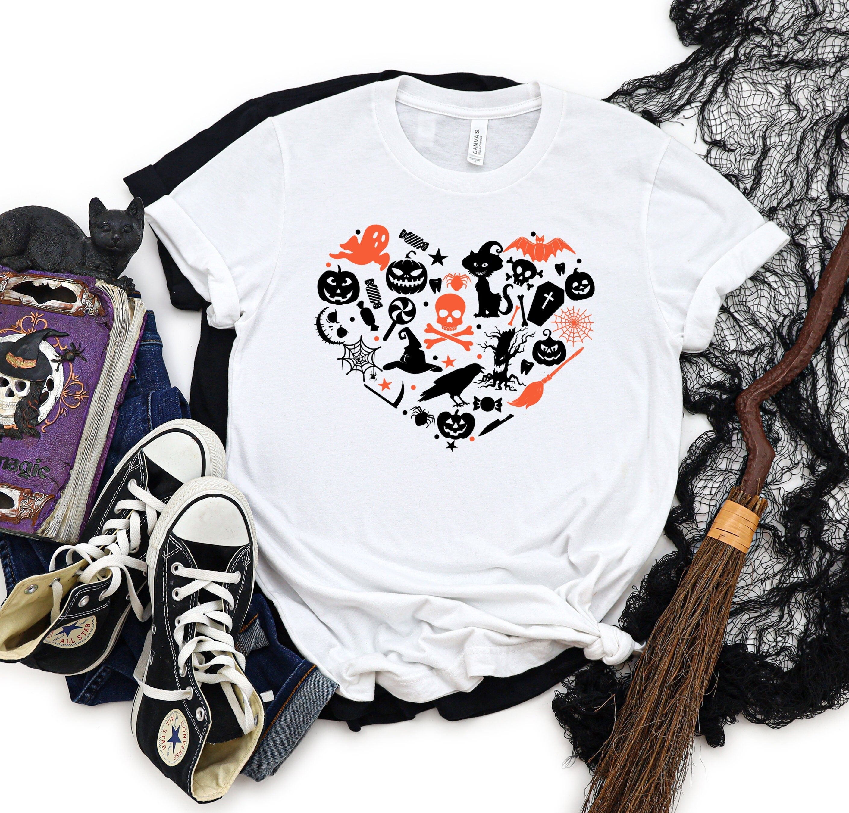 Doodles Heart, Halloween Shirt, Pumpkin Halloween T-Shirt, Funny Halloween Shirt, Halloween T-Shirt, Doodles T-Shirt, Bat Black Cat Ghost