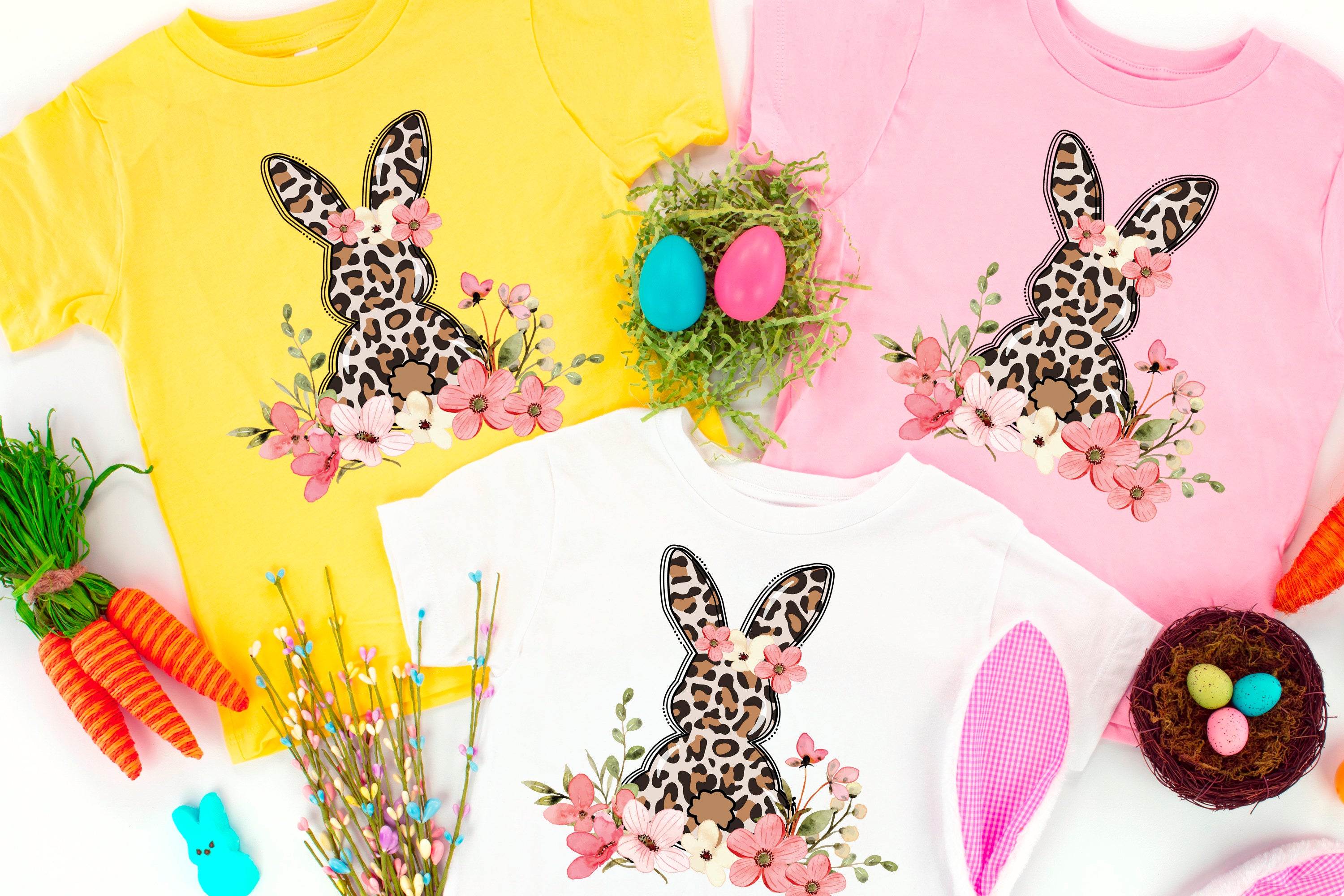 Floral Leopard Bunny Shirt, Bunny Shirt, Cute Easter Bunny T-Shirt, Happy Easter, Shirt with Bunnies, Easter Gift, Happy Easter T-Shirt
