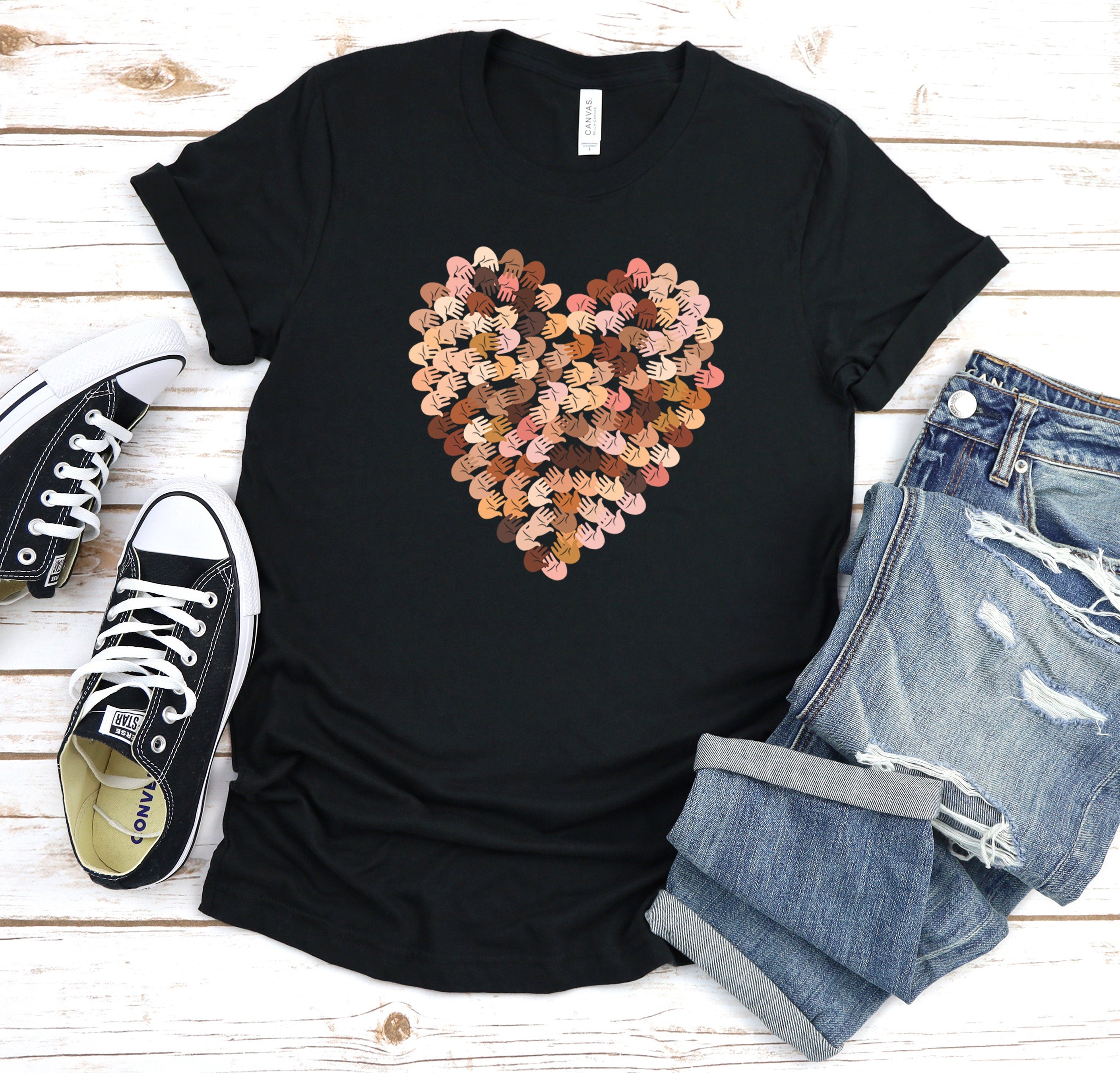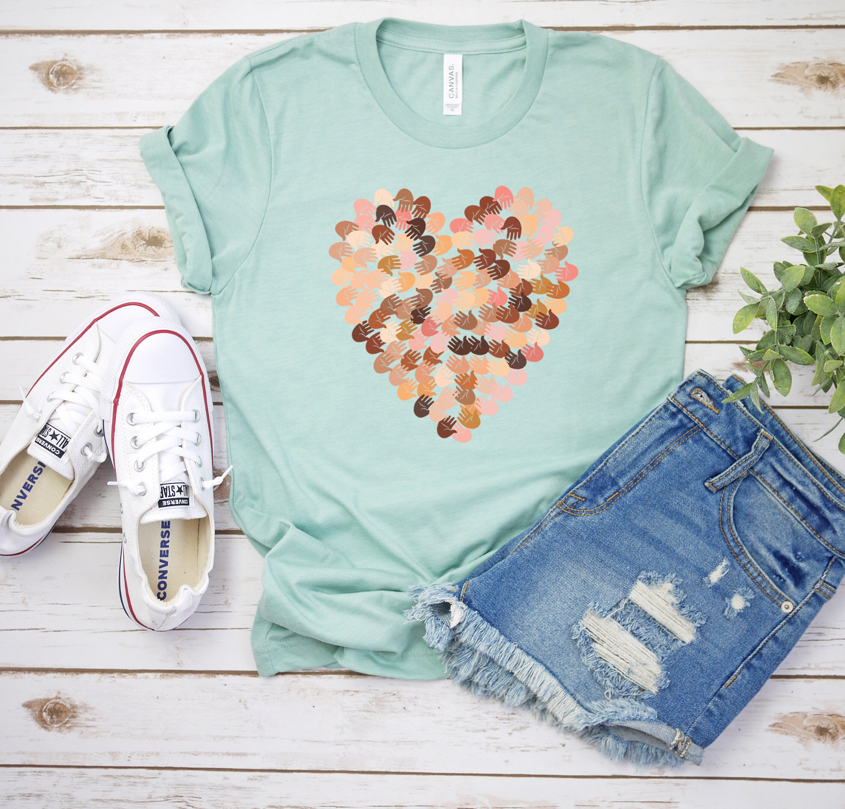 Equality Shirt, Different Races, Different Skin Colors, Hand Heart, Activist T-shirt, Empowerement