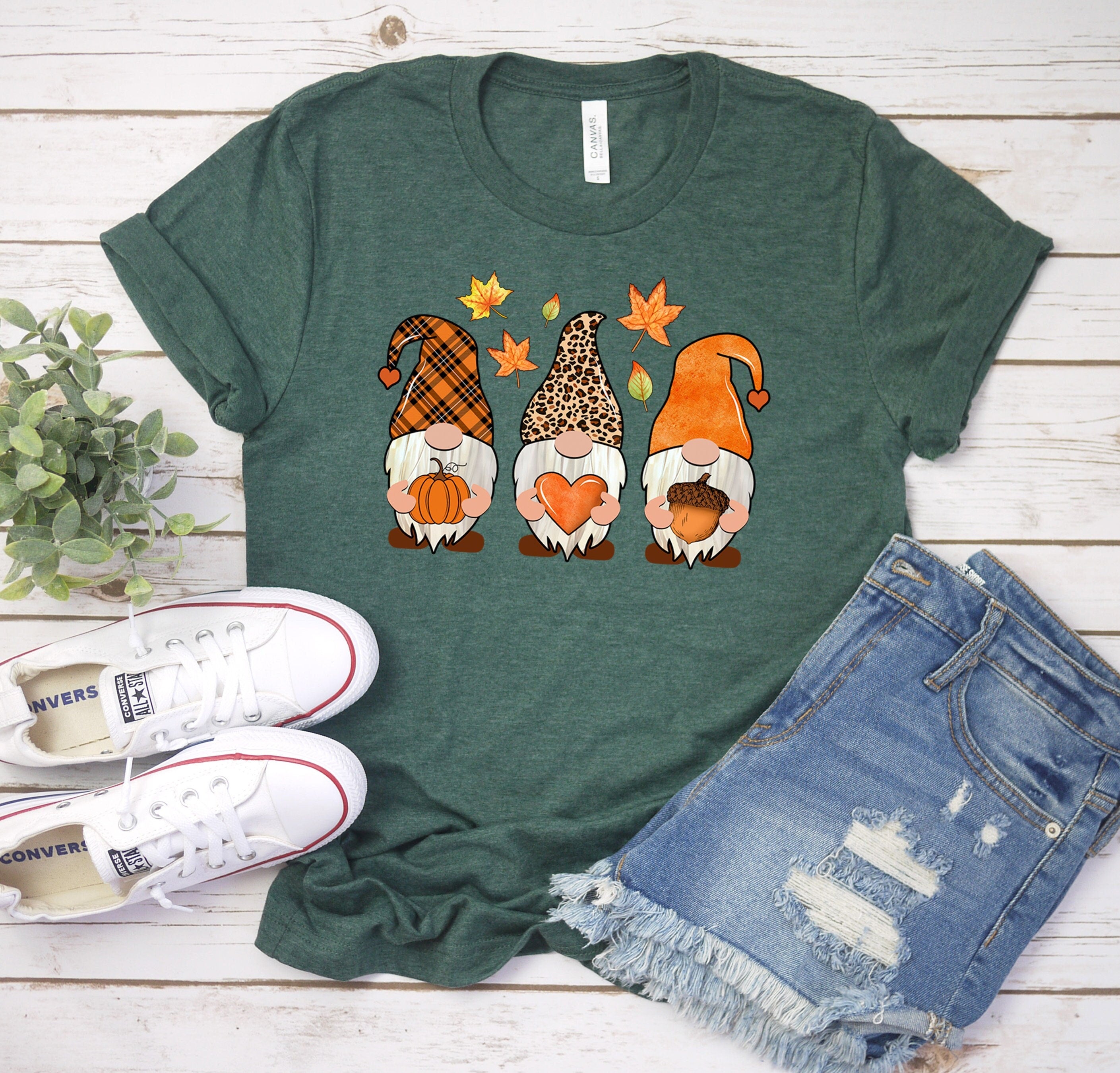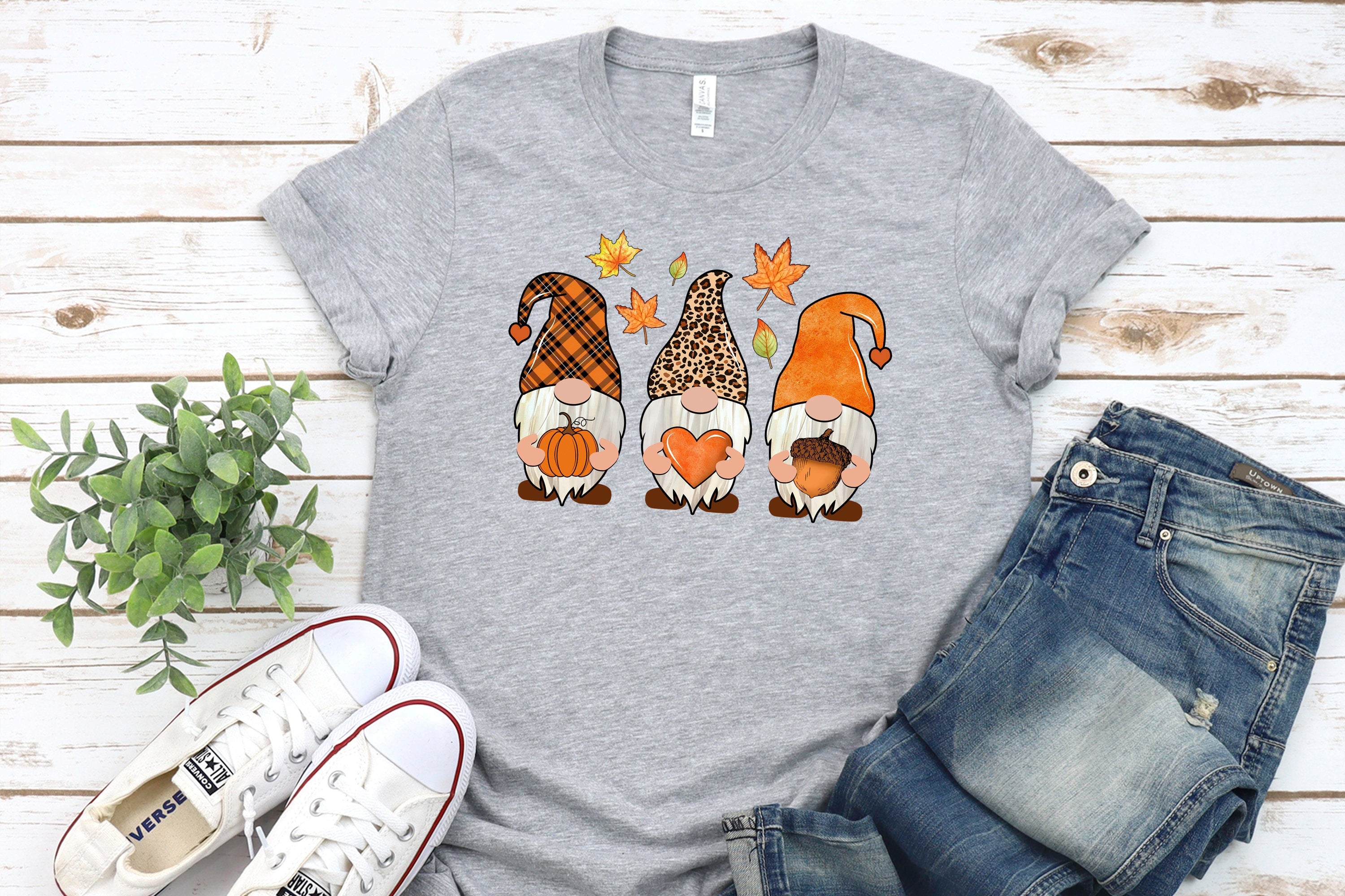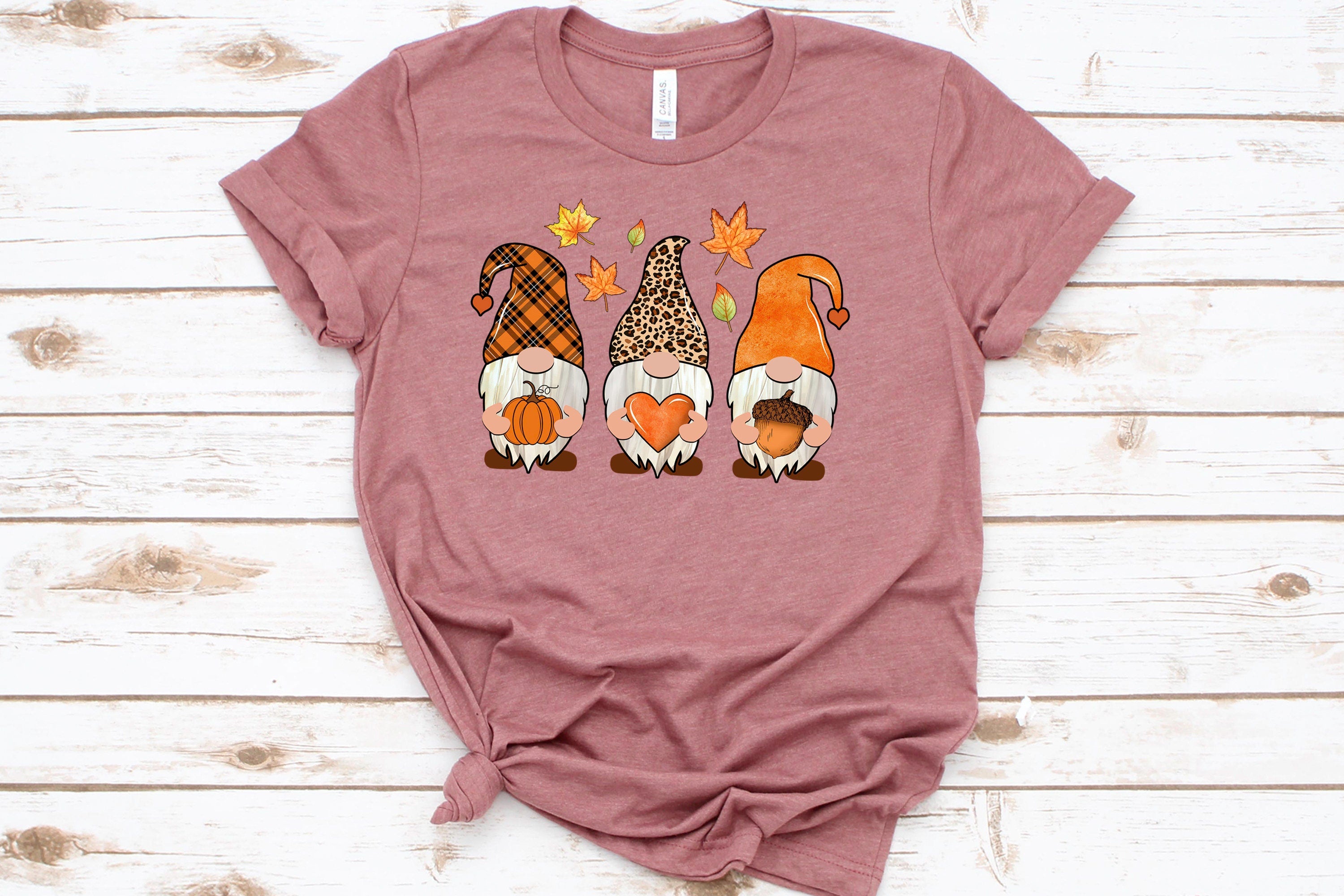 Fall Gnome Shirt, Pumpkin T-Shirt, Cute Gnomies, Leopard print, Acorn tee, Women's Fall Shirt, Fall Gifts, Fall Unisex Shirt