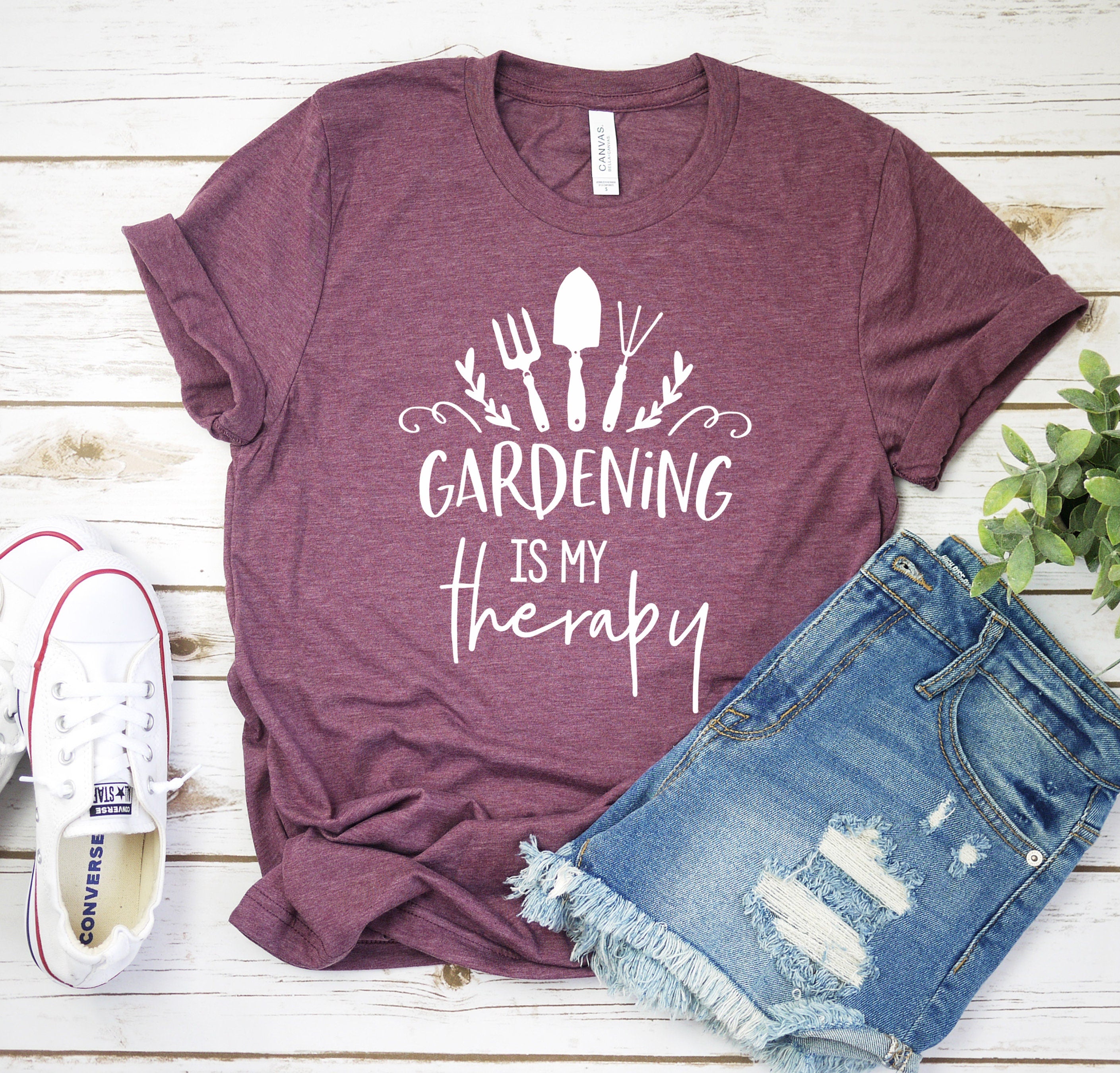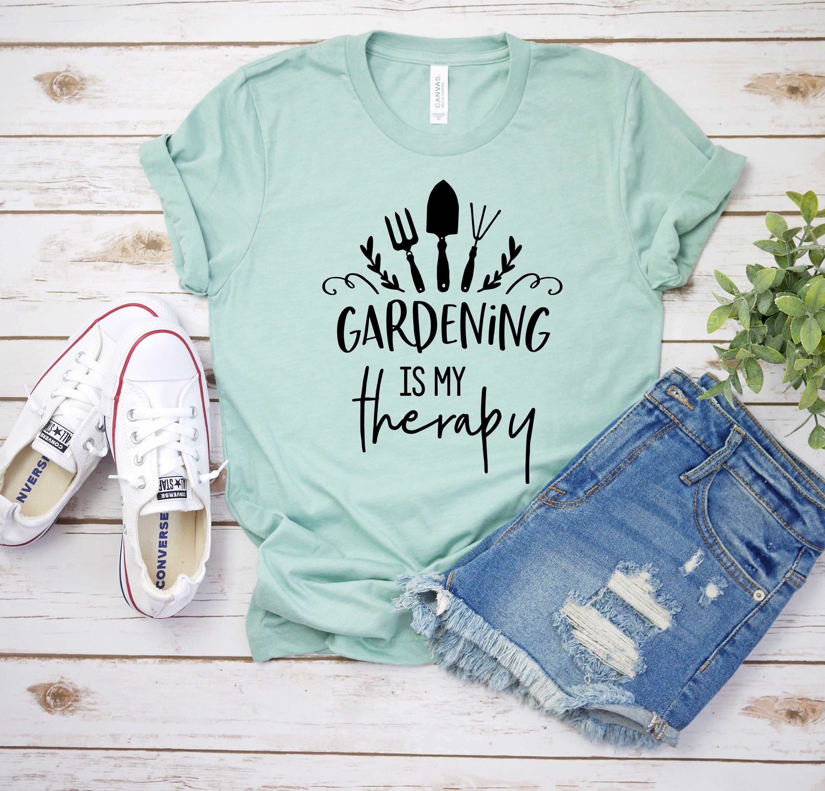 Gardening Is My Therapy, Garden T-shirt, Vegan Flower Tee, Womens Shirt, Plant Lady Shirt for Mom, Botanical Planter Gardener Outfit Tshirt