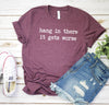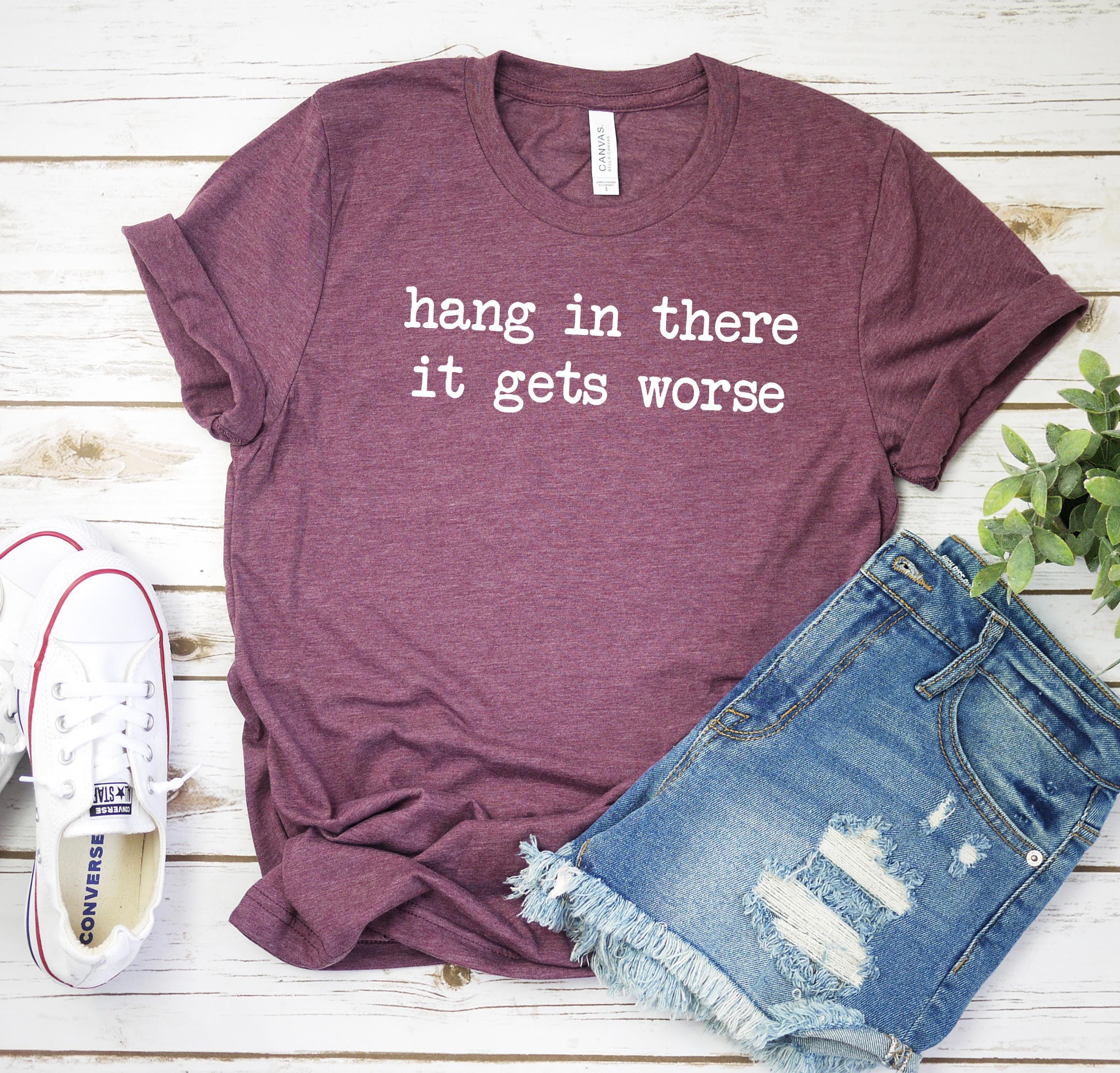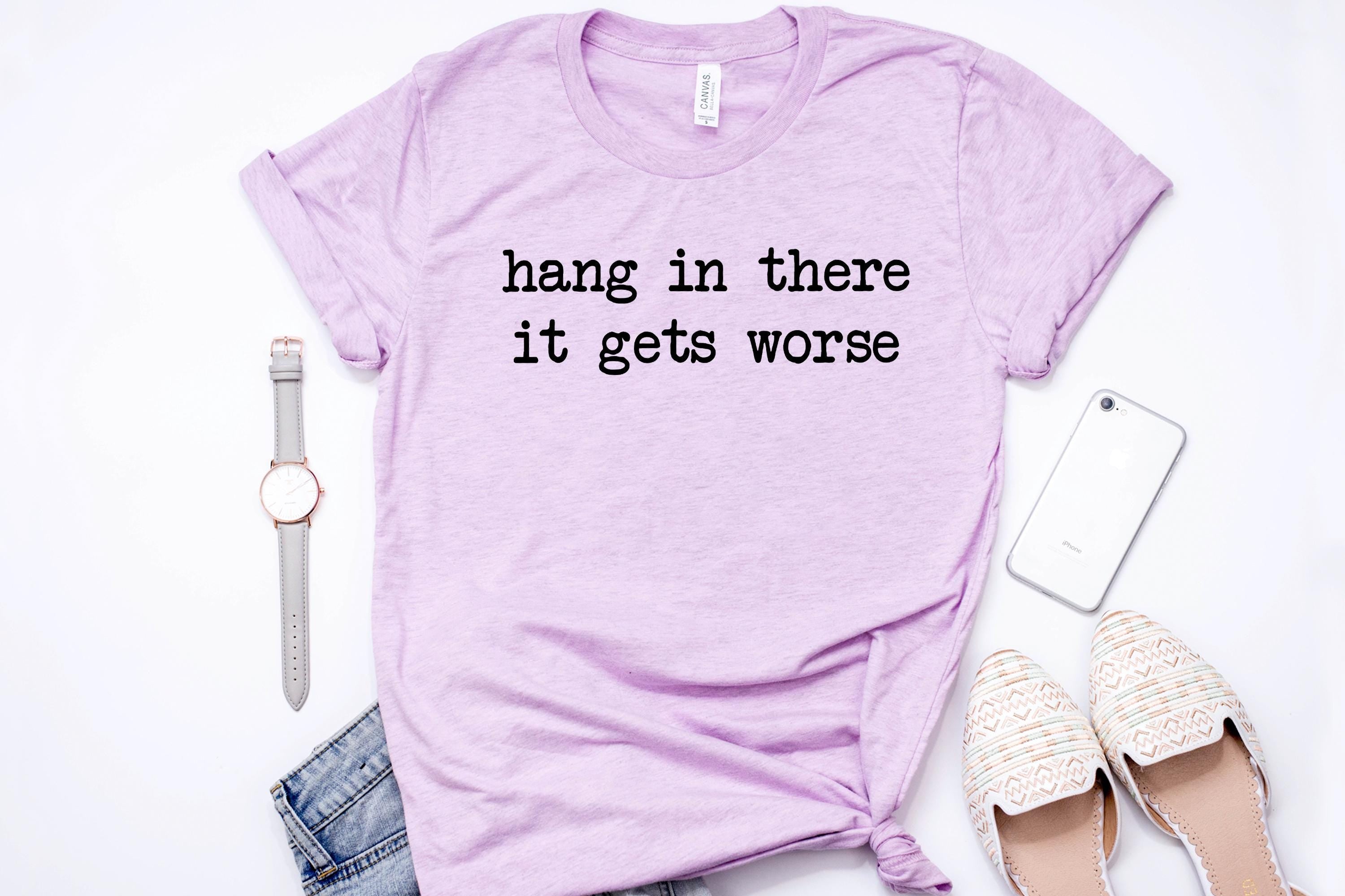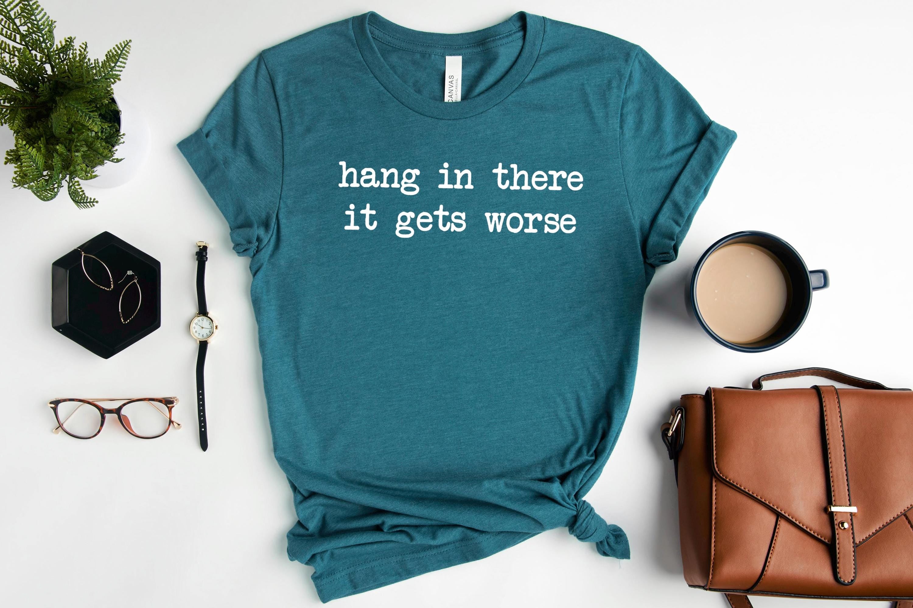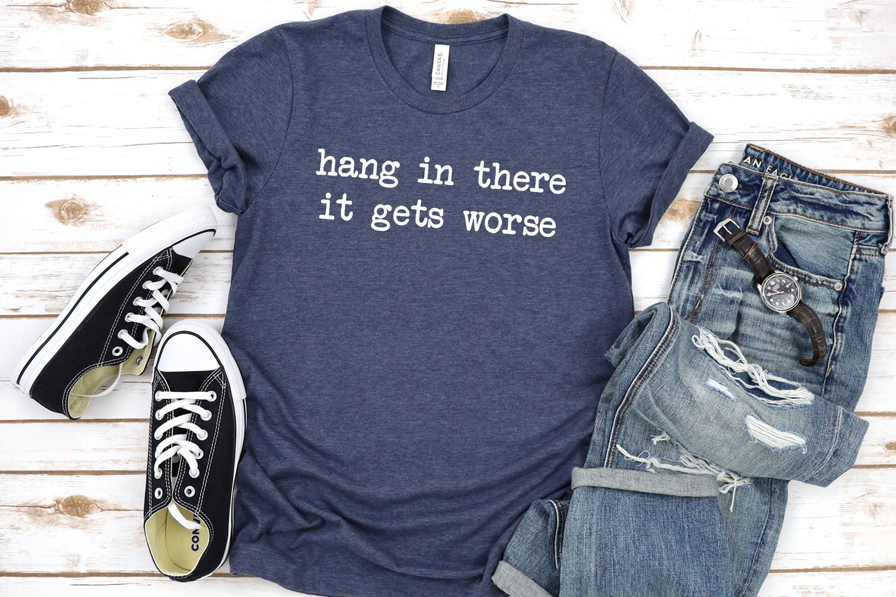 Hang In There It Gets Worse Shirt, Funny Sarcastic Shirt, Mental Health Humor Tee, Women's Shirt, Trendy Gift for Her, Anxiety Shirt