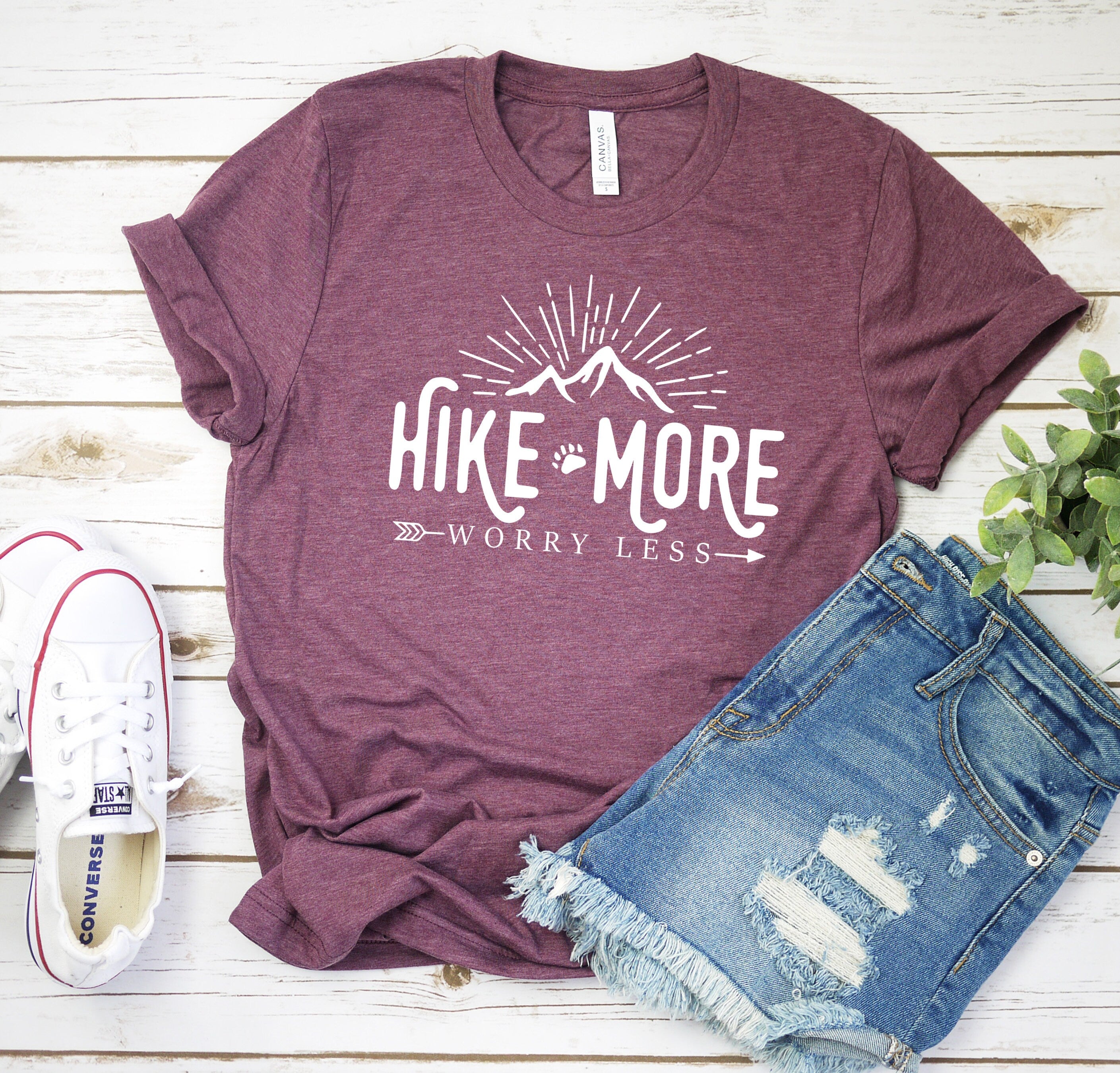 Hike More Worry Less, Hiking Shirt, adventure camping shirt, outdoors, wanderlust shirt, arrows, vacation trip, mountine camping
