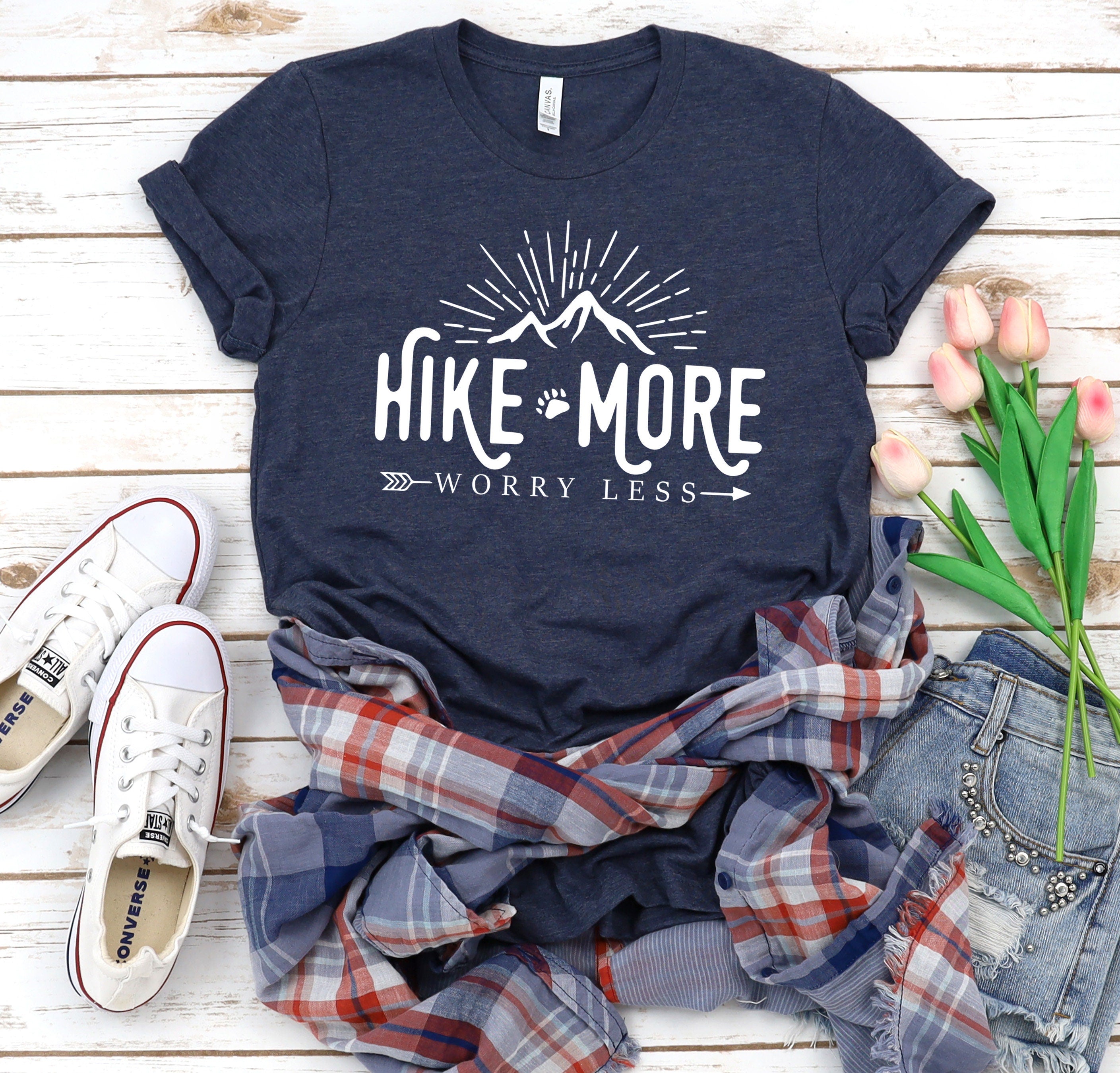 Hiking Shirt ~ Hike More Worry Less T-Shirt- adventure camping shirt, outdoors, wanderlust shirt, arrows, vacation trip. mountine camping Unisex T Shirt is made of super soft lightweight cotton