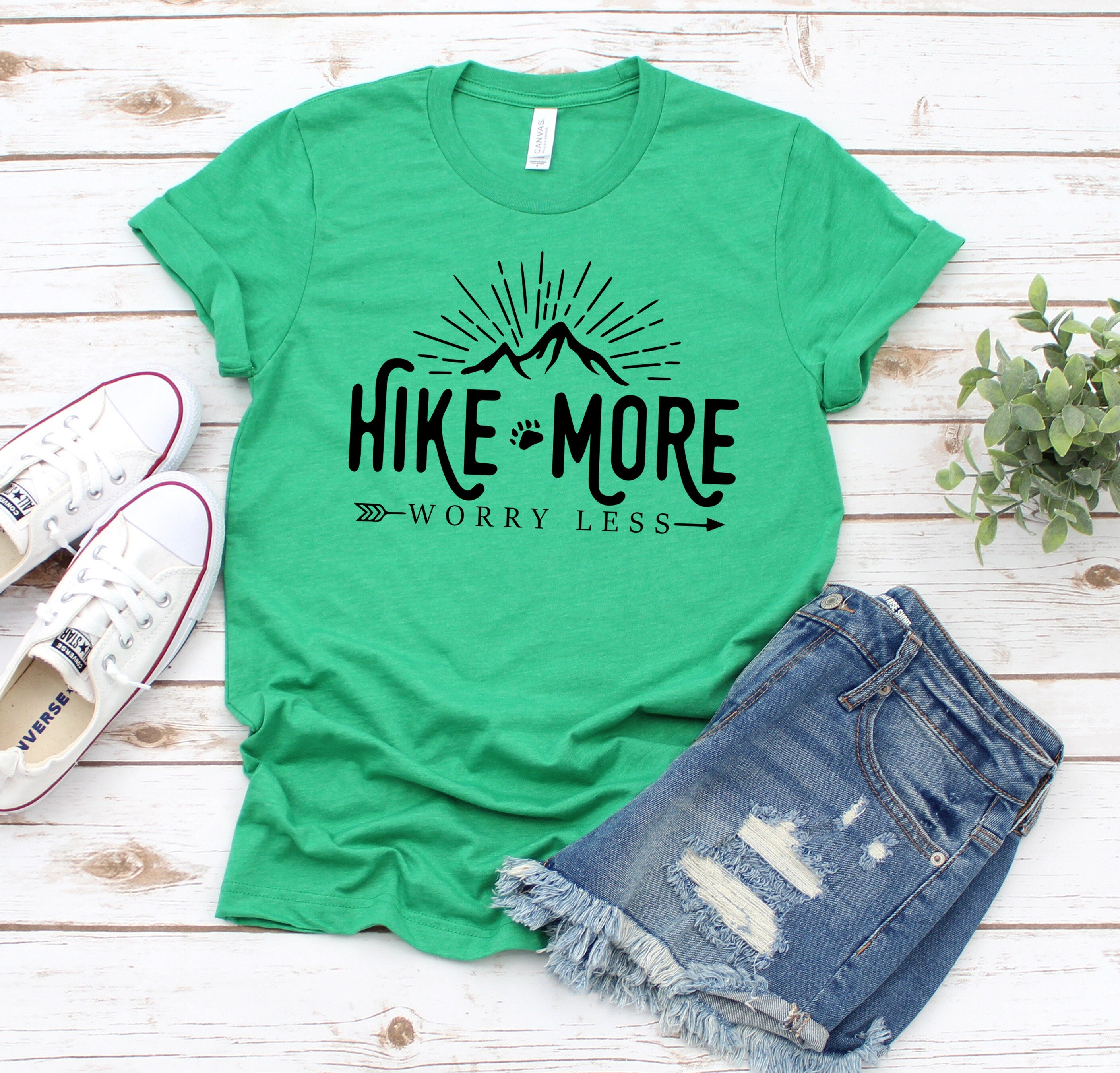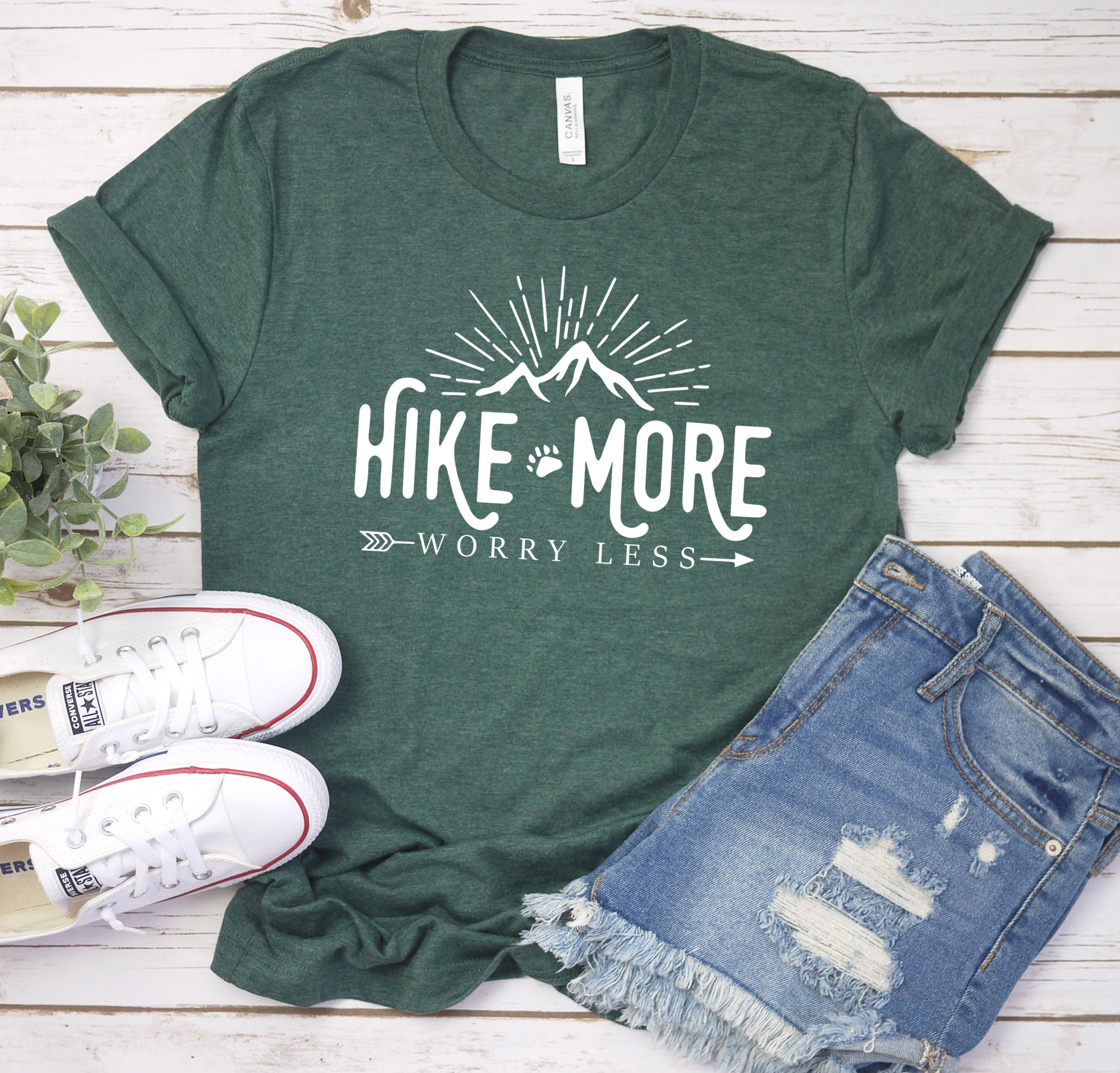 Hiking Shirt - Hike More Worry Less Shirt- adventure camping shirt, outdoors, wanderlust t-shirt, arrows, vacation trip, mountine camping