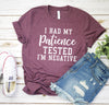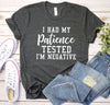 I had my patience tested I'm negative T-Shirt, Sarcastic Shirt, Introvert Shirt, Funny Graphic Tee