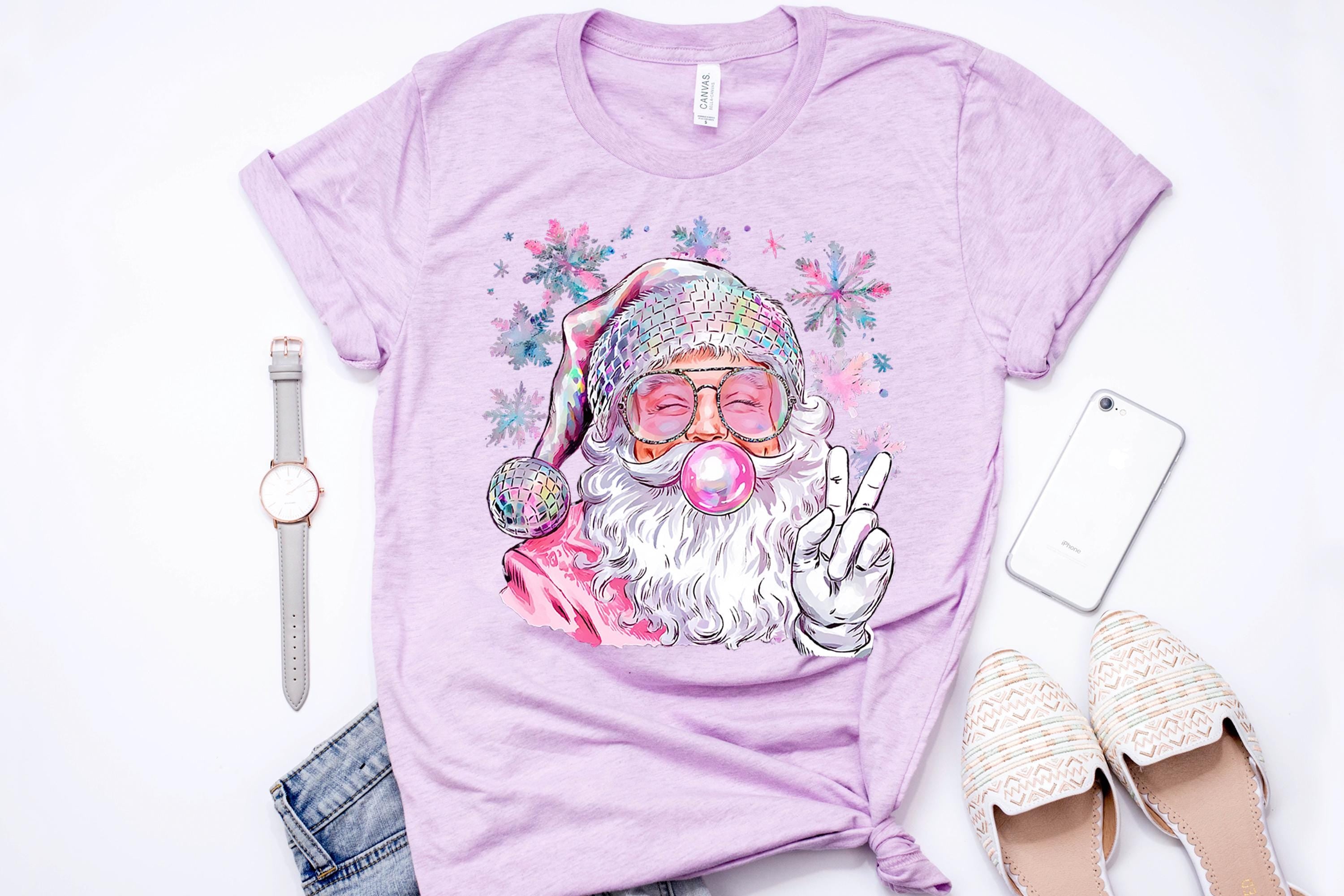 Christmas Santa Shirt, Retro Santa Shirt, Gift For Christmas, Pink Santa Hat Shirt, Vintage Santa Shirt, Retro Pink Santa Shirt, Santa shirt Retro Santa Christmas Blowing Bubble Shirt, Funny Santa With Sunglasses Xmas, Vintage Merry Christmas Shirt, Pink Santa Christmas T-shirt
