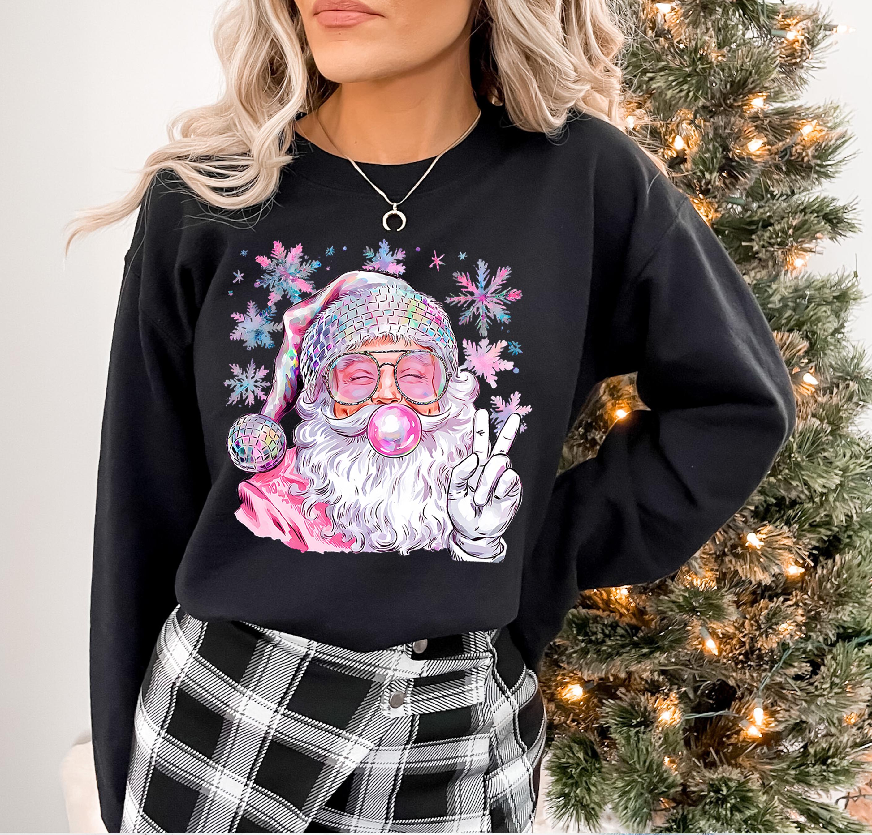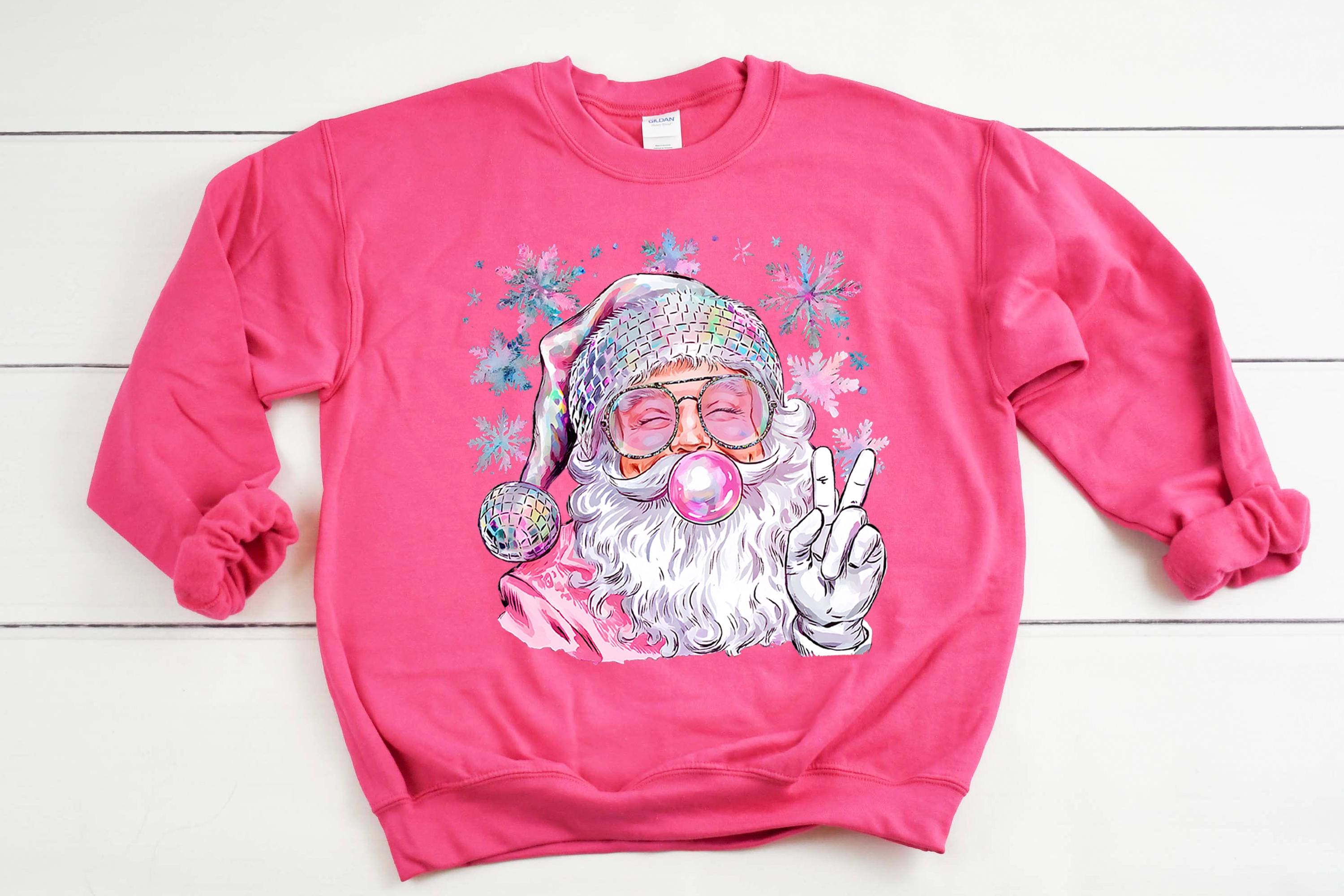 Santa Christmas Blowing Bubble Retro Sweatshirt, Funny Santa With Sunglasses Xmas, Vintage Merry Christmas Shirt, Pink Santa Christmas shirt
