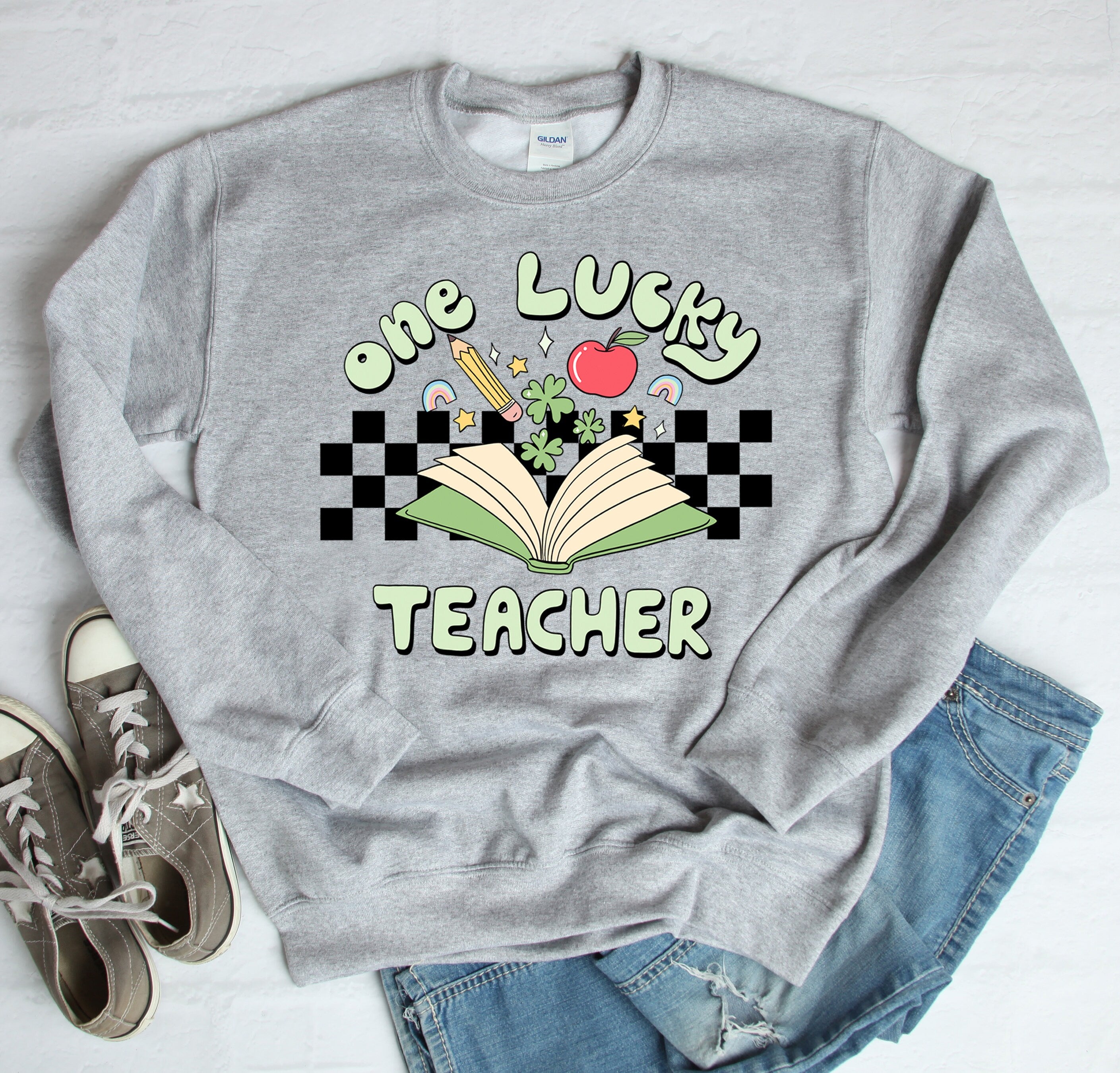 St. Patricks Day Sweatshirt - One Lucky Teacher Shirt- Women's St Patricks Day Outfit - Teacher Sweatshirt - Irish Day Sweatshirt