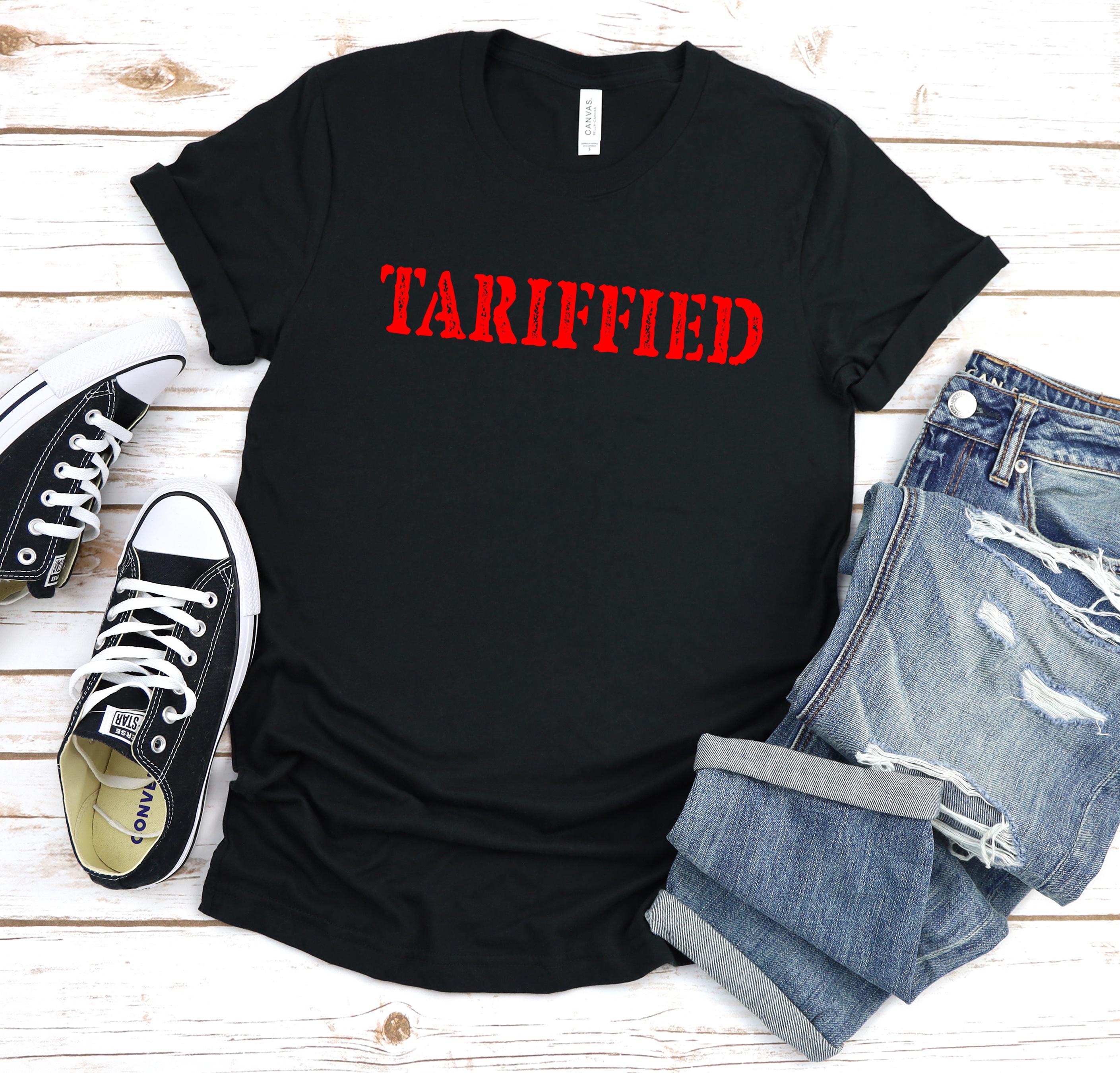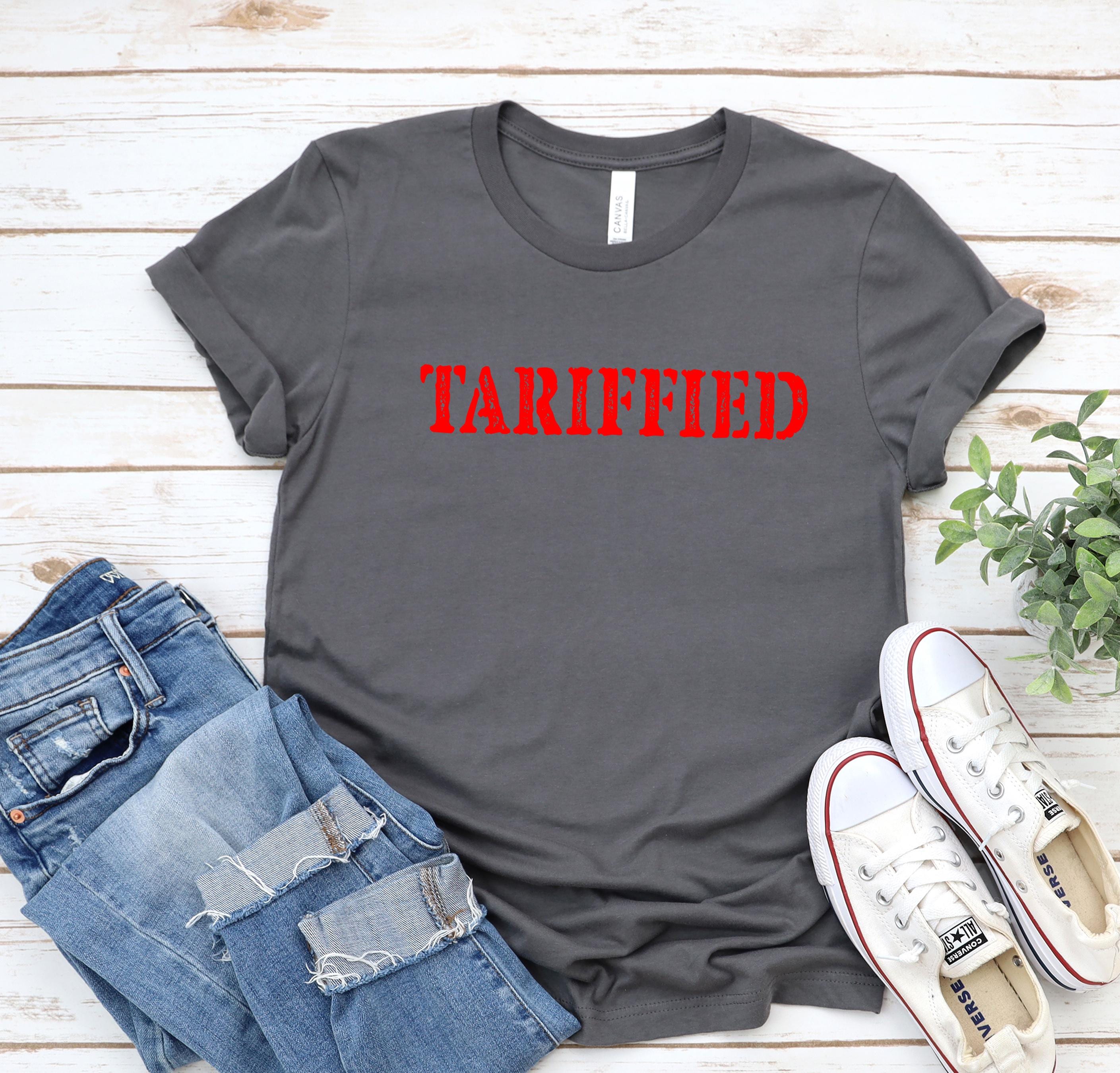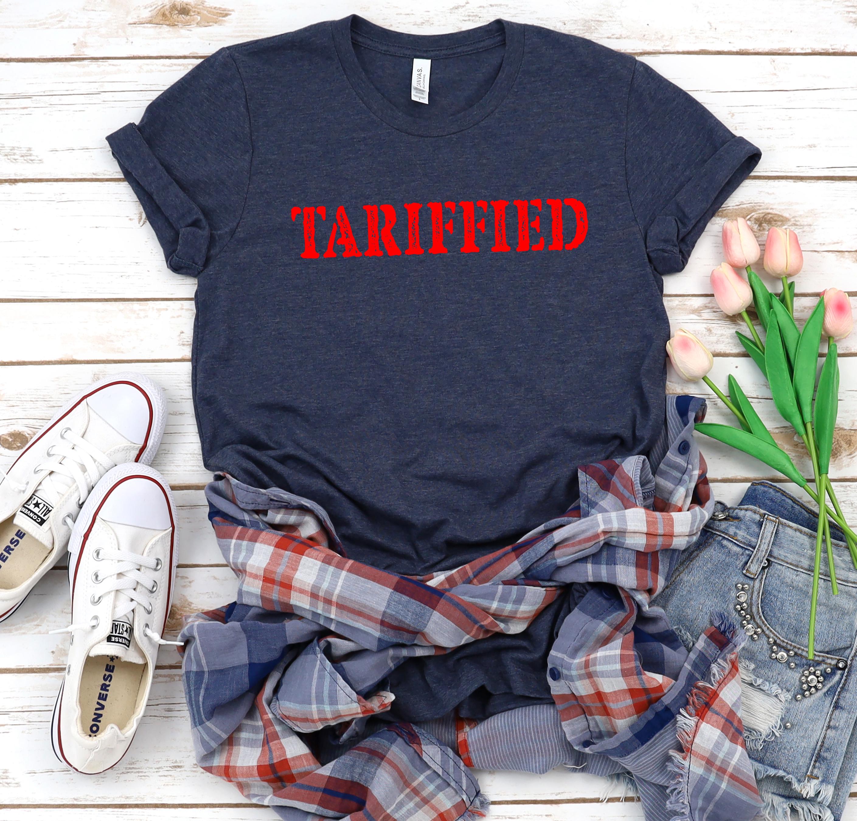 Tariffied shirt, Political Humor, Tariffs Economy World Politic Funny Sarcastic,Terrified, SNL Satire, Protest Shirt, Liberal Shirt, FDT tee